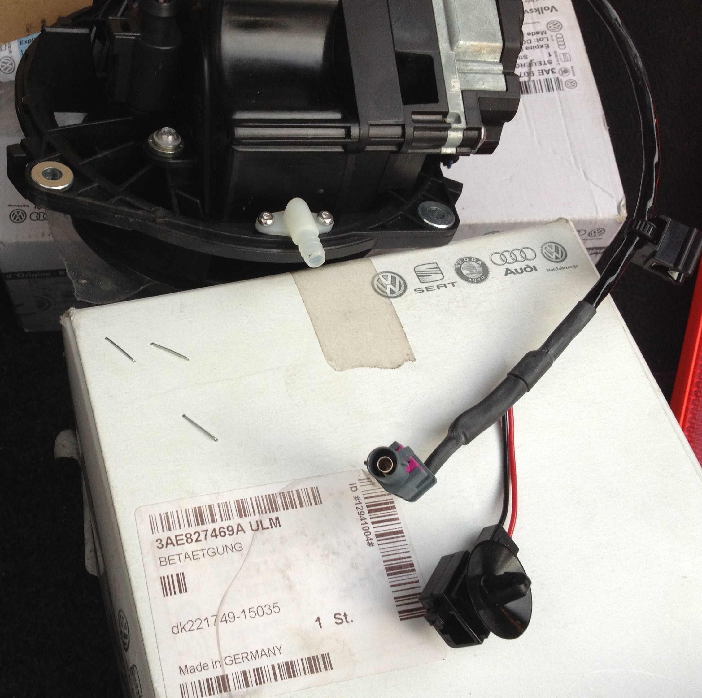 На e-bay была заказана камера (OEM rear view emblem badge camera VW Passat, Golf 5K0827459AQ 5K0 827 459 AQ) без блока прорисовки траектории, мне и без нее вполне реально припарковать свой параход
