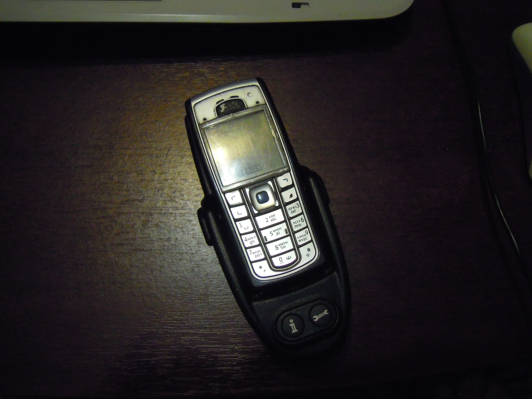 Что с ним делать, пока не знаю: то ли его совсем оторвать, чтобы не маячил, то ли доукомплектовать, воткнуть мобильник и пользоваться.