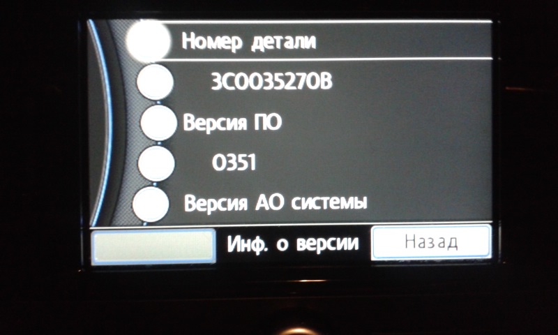 Пользуясь советами UGLEKISLOROD, у меня всё получилось, но не сразу. Вот в кратце как было у меня изначально: стояла вот эта версия 0212, затем прошил диском из раздачи 02хх - 0351, всё прошло просто и быстро и получилась версия 0351 уже с русским языком - всё как на двух фото выше у drozdov03. Всё это меня очень даже устроило и далее с прошивками я делать ничего не собирался, но понеосторожности вставил официальный диск с прошивкой 0357, процесс шёл намного дольше и как я писал выше появилась надпись на экране RNS-310 чтото вроде (ПО успешно установлено), и после заставки включения на белом экране выскачило такое сообщение Software update needed Please insert download data carrier, всё как на первом фото UGLEKISLOROD выше и на его вопрос - (А ты вообще этот текст, который на белом фоне, переводил?), конечно переводил вот только RNSка отказывалась принимать диск точно не помню сколько раз я его туда отправлял,но постоянно RNS его выбрасы вала назад, (подумал что с официальным что то не так,может что с записью либо ещё что). Далее я вставил диск 02хх - 0351 RNSка его приняла и на этом погасло всё и вообще никаких признаков жизни, ни звуков ни кнопки ниначто не реагировали на этом я и угаманился пошёл спать,как говориться утро вечера мудреннее. На следующий день диск 02хх - 0351 RNSка отдала,но после заставки включения выдала опять - Software update needed Please insert download data carrier,далее после совета UGLEKISLOROD я взял диск с официальной прошивкой, вставил в RNS она его опять выбросила я его опять туда и так наверное раз 5 или 6 точно не помню.И только тогда всё пошло как на втором фото UGLEKISLOROD выше,извините свои фото что то выложить не получилось наверное не на те пидали жму.В общем всё прошло на ура, всё чотко версия стала 0357, номер 3C0035270B русский язык остался и я остался доволен как слон ведь делал это всё я первый раз!!! Ребята спасибо всем за вниманее, всем удачи и главное здоровья!!! И отдельное спосибо UGLEKISLOROD за помощь!!!