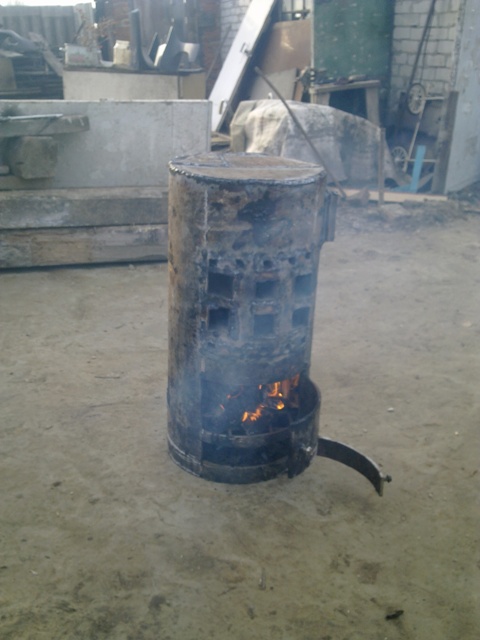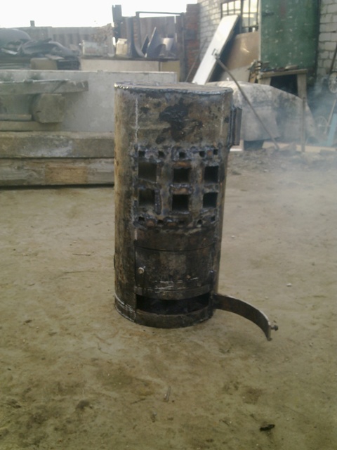 В общем сварил пока "буржуйку", седня поеду за вентилятором. Останется приделать вентилятор и приспособить трубку для подачи масла. Вчера опробовал топить дровами и в тарелку налил отработки, горит отменно и греет особенно от радиатора (сквозные трубы). К этим трубам и собираюсь подсоединить вентилятор через желоб из оцинковки.