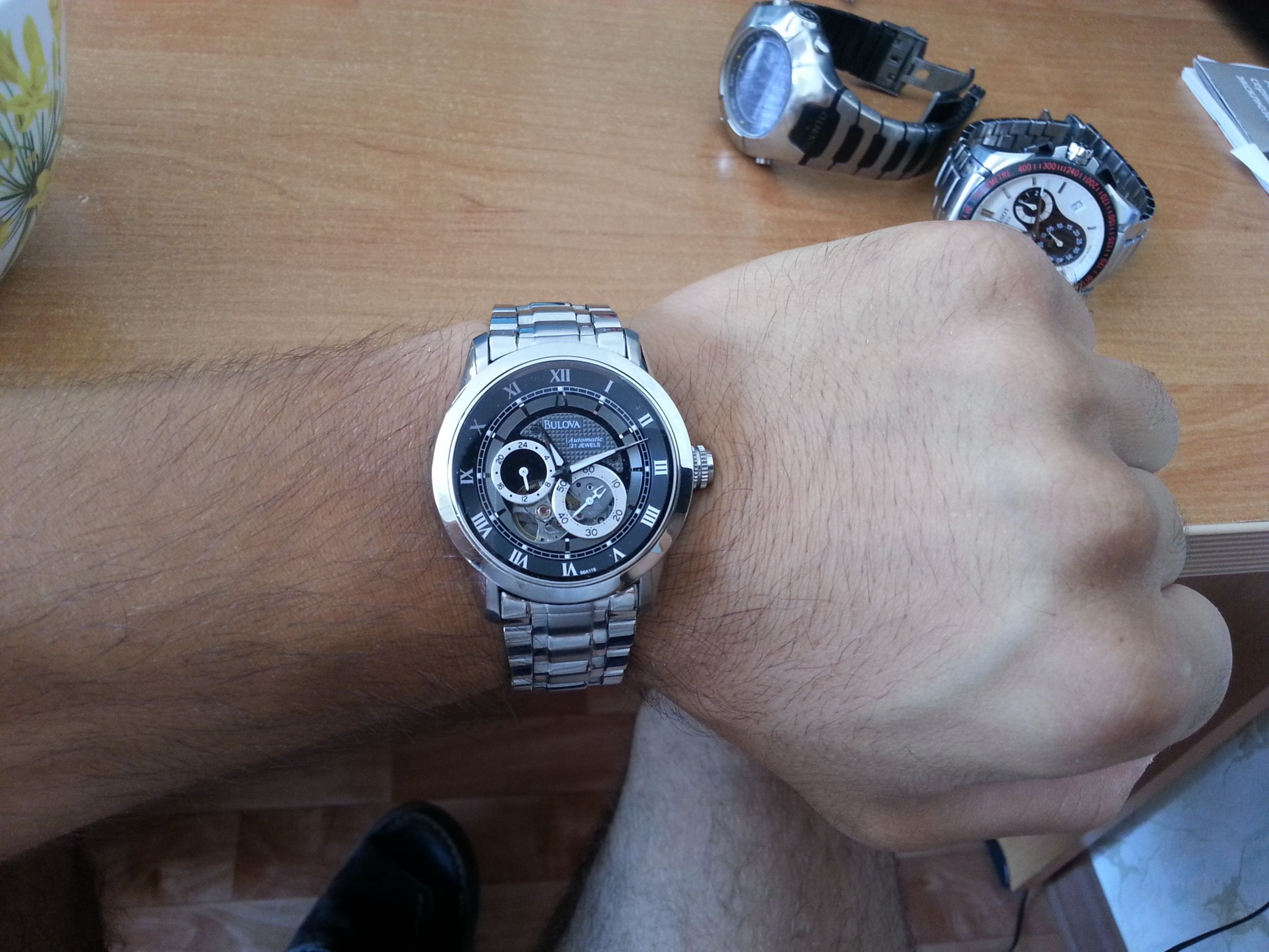 У меня не дорогие швецарские классические с большими циферками и кожаным ремешком.