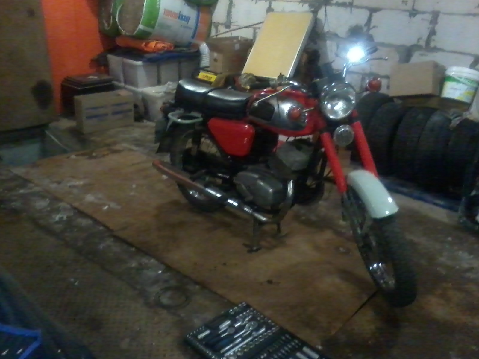 Дома! Блин, лежал мотик на правом боку, масло с мотора вытекло, сальник на вторичном валу под замену