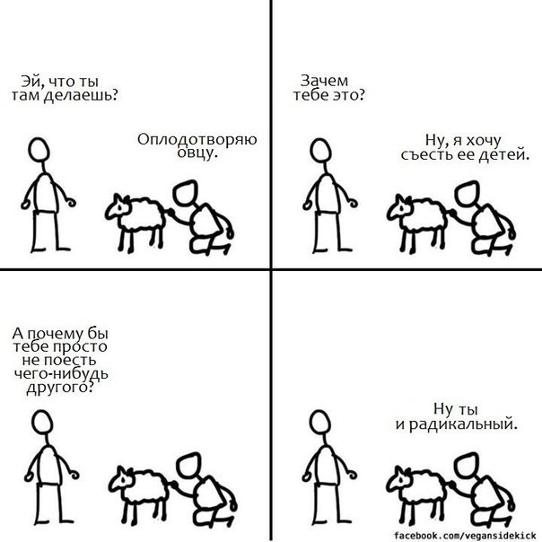 А по поводу дур - так они есть и среди мясоедок и среди веганок - это от типа питания не зависит, тут ошибка не в поведении - в ДНК... Была у нас, помнится, в отделе кадров веганка одна, долбанутая, тоже с болтами в бровях, кстати,