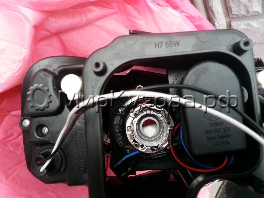 Ближний и дальний в одной линзе со шторкой. На габаритах диодной полоса, светящийся белый ободок вокруг линзы и оранжевая лампа. Чтобы шторка работала, впаивается сопротивление