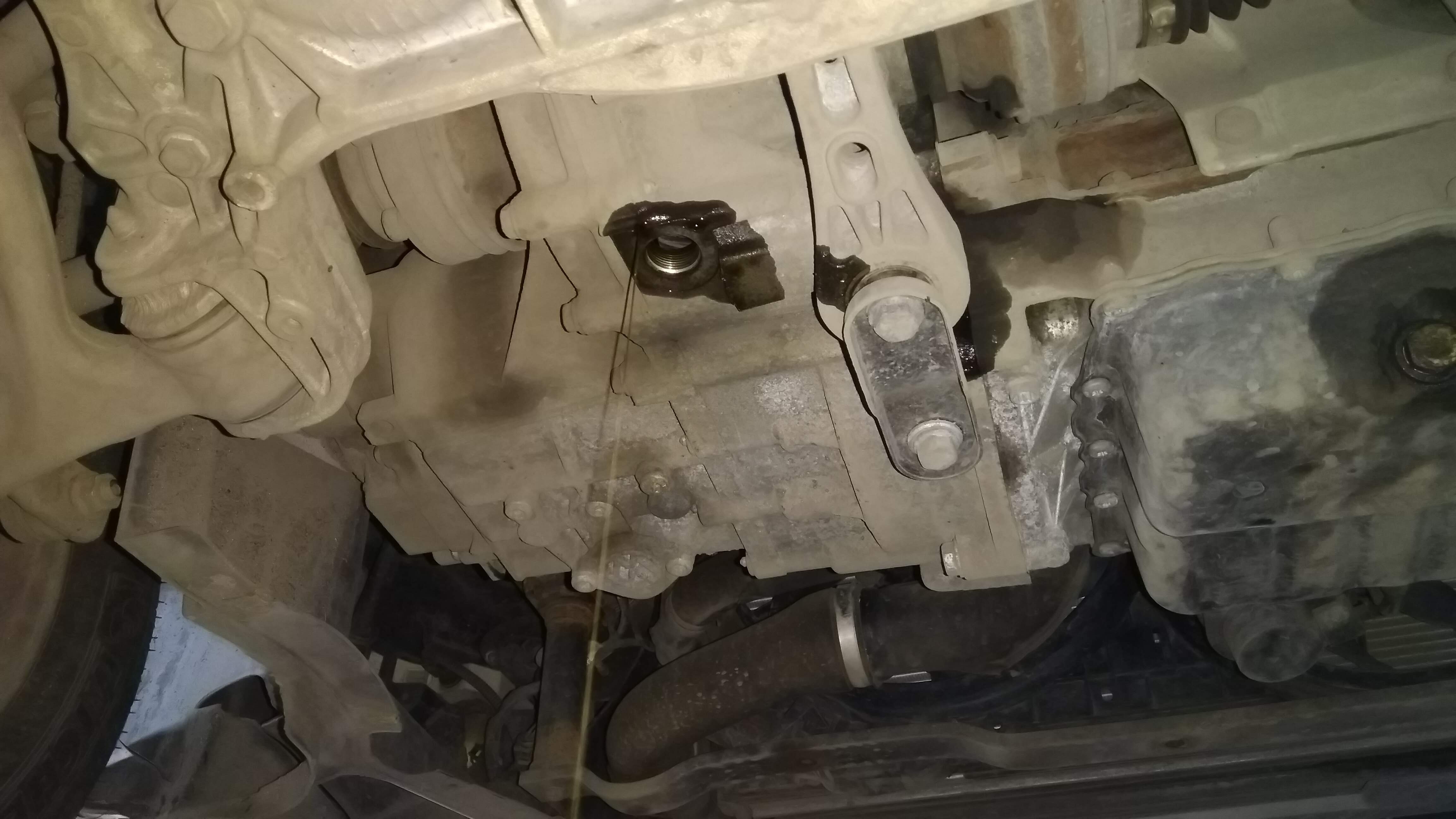 Заодно обнаружил течь на стыке двигателя и коробки...