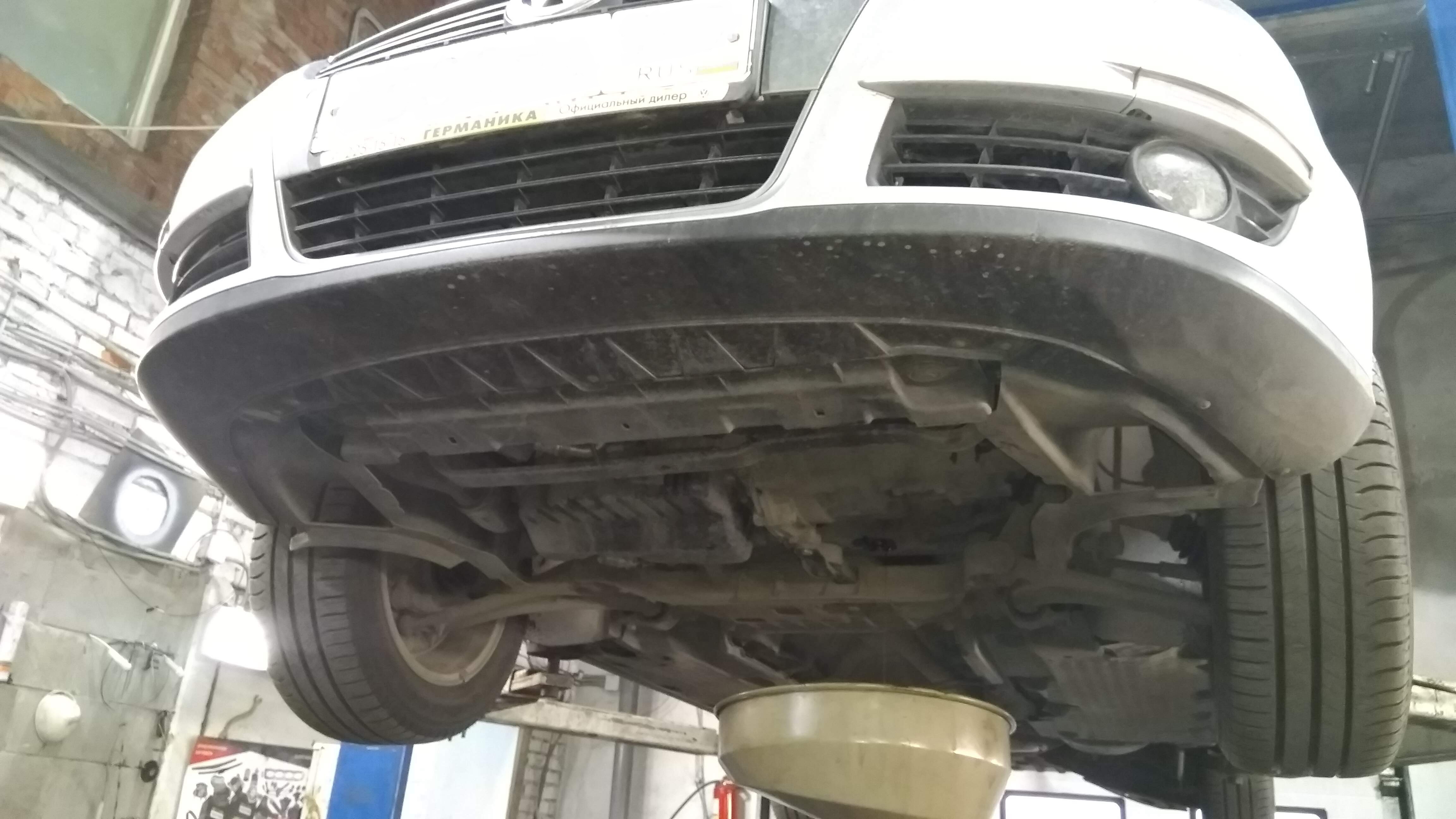 Думаю, что в первую очередь надо из под капота (сверху) посмотреть есть течи в районе двигателя/коробка. Может течет где то сверху, и стекает вниз.
