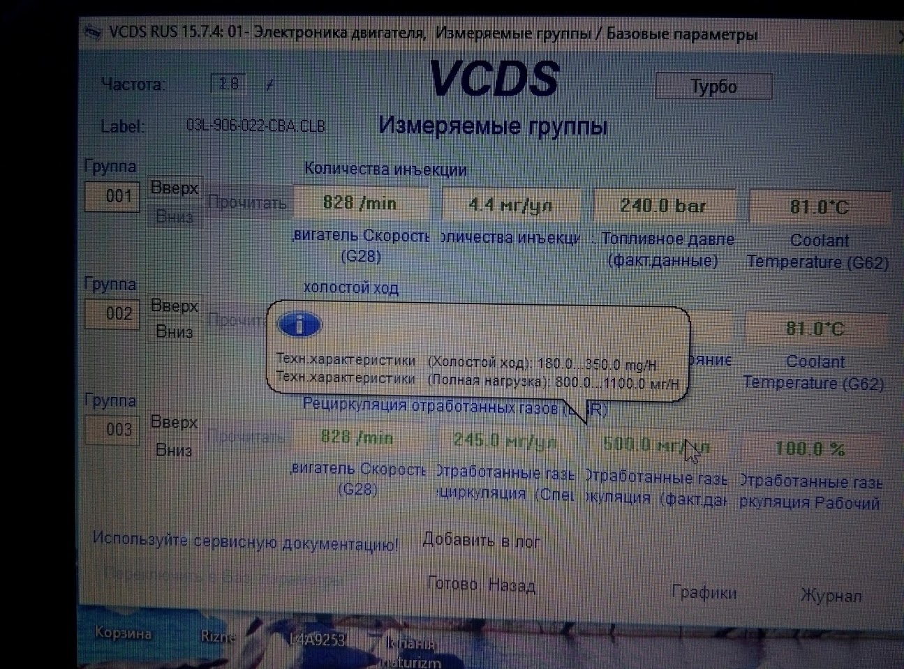 . Потом заметил ещё такой момент, что когда включаю D или R, отпускаю тормоз и не нажимаю на газ, обороты,изначально было 780, просаживались где-то до 730 и через секунду-две подымались до 780-800, поднял обороты до 820 (комп показывает 828), обороты при таком старте в 80% случаев так же проседают где-то на 50,до 780-750 и при этом идет дрожь по машине (иногда проседают до 780-750 и не подымаются до нужных 820), но в те редкие моменты,когда обороты не просаживаются, никаких тебе вибраций...а,ну и при этом,последних месяцев 7 заводилось авто не с пол тыка (как было раньше), а стартер где-то секунду-две крутил,иногда дольше, очень редко, но было, что завелась и сразу заглохла,потом сразу опять заводишь-всё ок...Было принято решение и отключено программно и физически ЕГР, после этого обороты так же просаживаются, заводится стала немножко хуже (по ощущениям стартер крутит чуточку дольше) и после заводки обороты подымаются до 950,когда прогревается падают до 820. Вчера,почитав эту тему,проверил показатели по группам,и вот что с этого получилось: