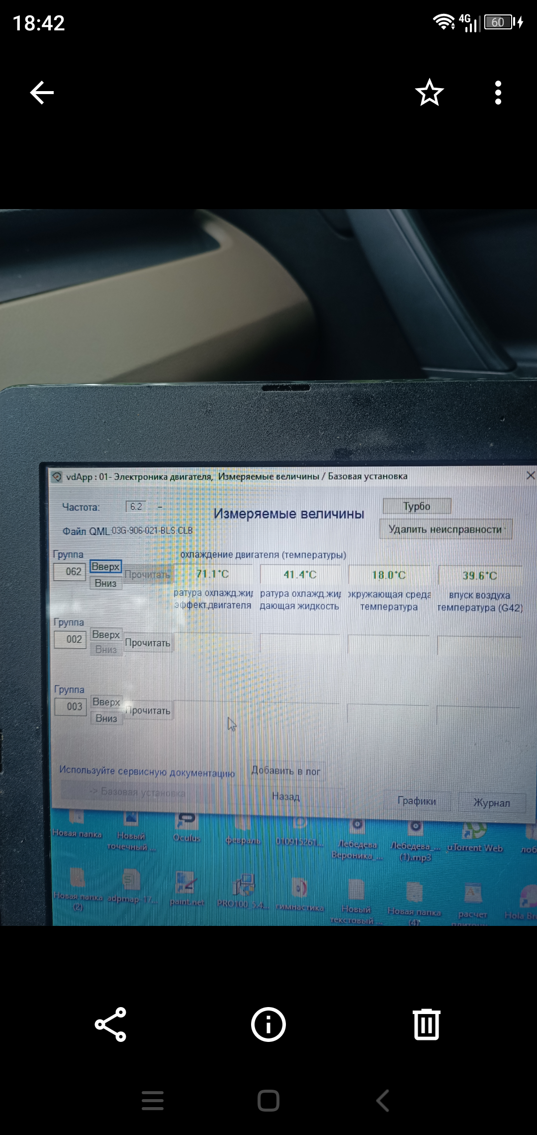 По датчикам : G17 - темп. нар. воздуха (на приборке), G42 - темп. воздуха на впуске, G62 - темп. охл. жидкости, G83 - темп. охл. жид. на выходе из радиатора, G266 - уровень и темп. масла.