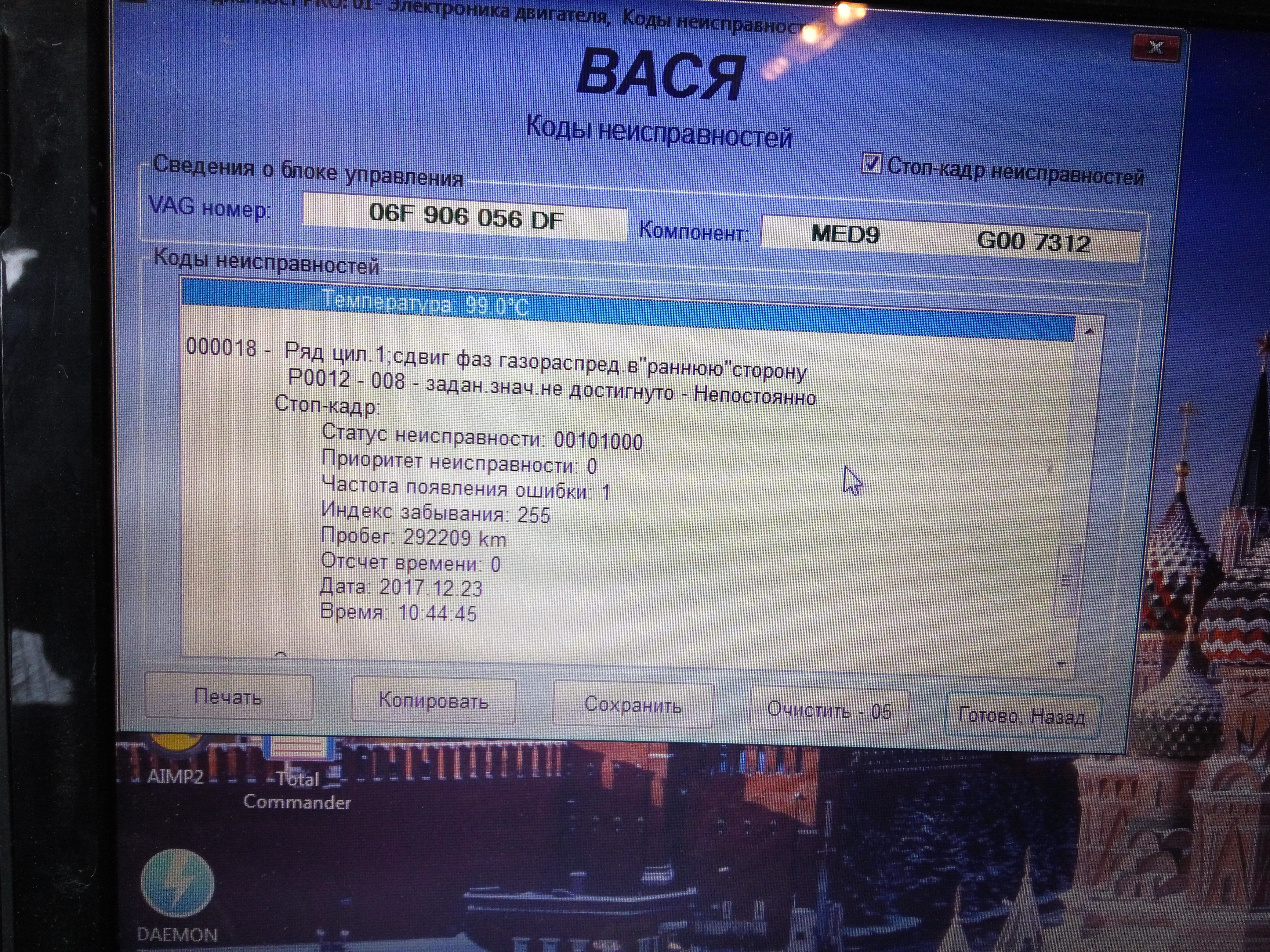 CITIZEN21Вытащите клапан регулировки фаз. Продуйте его подавая на него питание! Была у меня такая ошибка! Продул его и все встало в норму.