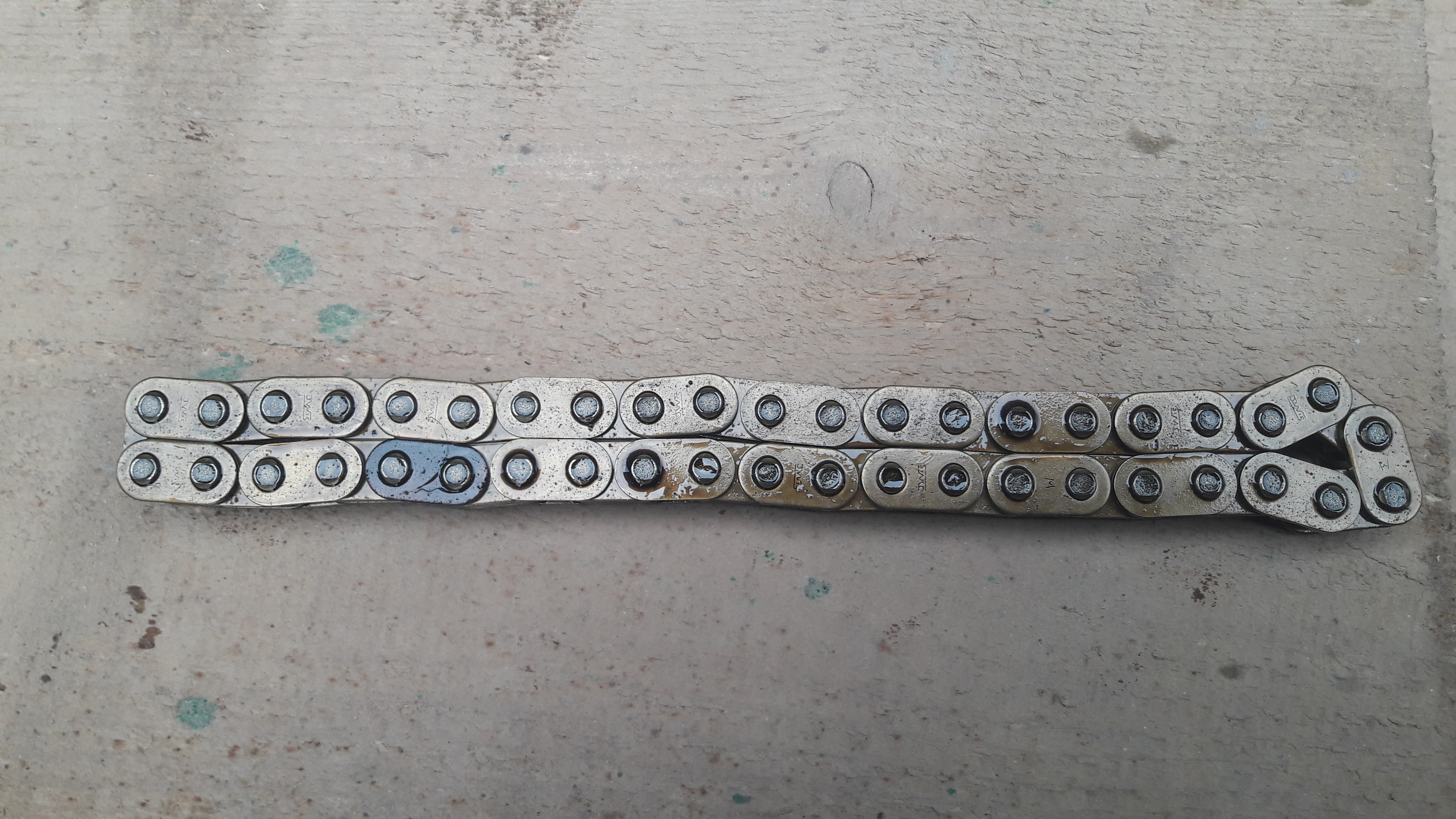 Я цепь поменял как раз из за того что после прогрева или дальней поездки тарахтело оооочень громко, мне порой было стыдно на людях с заведенным мотором стоять. Ну и как выше на фото было видно не зря поменял.