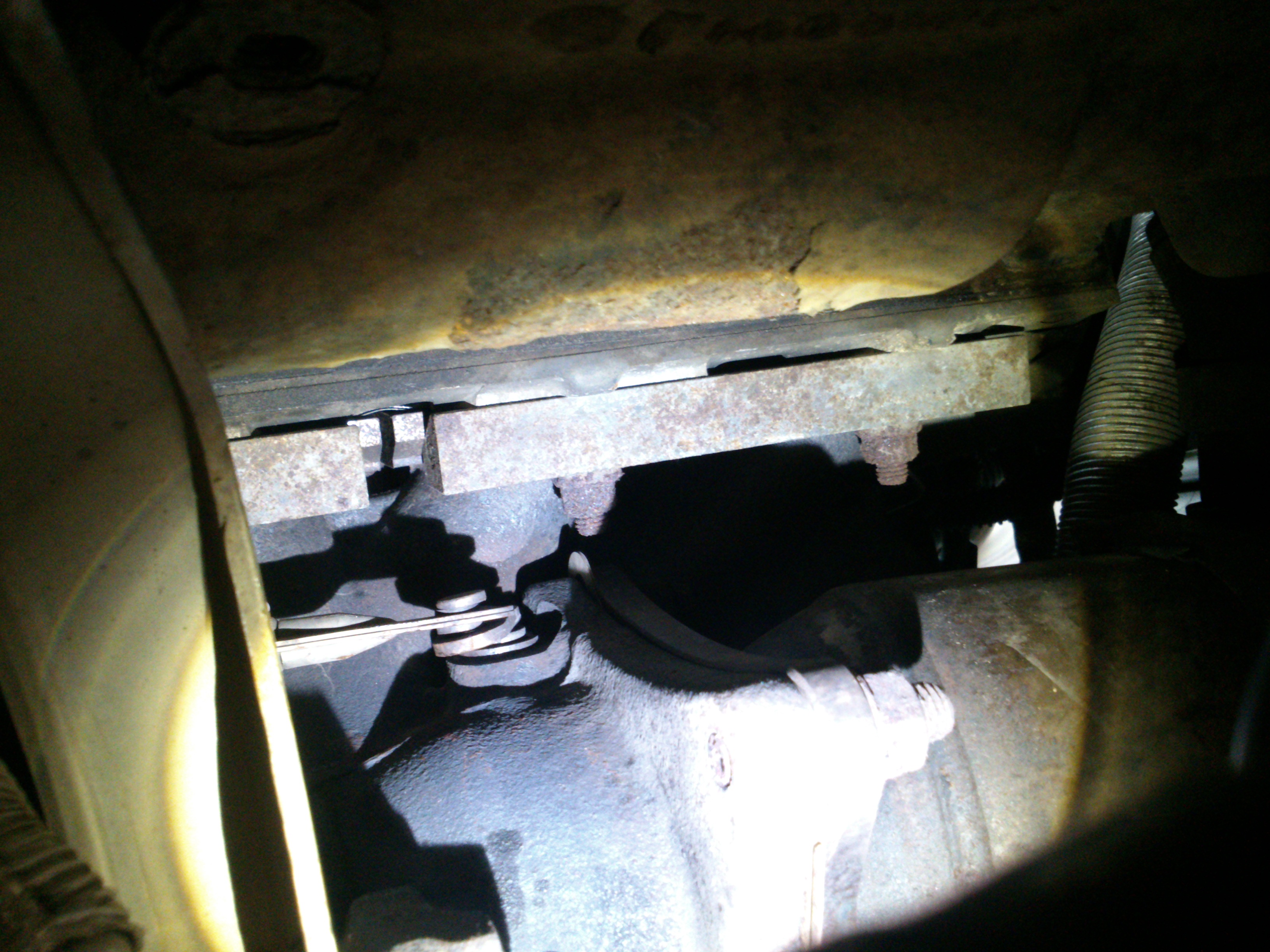 Картина мне не понравилась. Видно, что рычаг калитки с небольшим перекосом, относительно втулки. Подергал его монтажкой, упиревшись в какой то кронштейн, ходит плотно, ничего не болтается. Пошевелил его пассатижами в поперечном направлении, как бы выкручивая, люфт порядка 3мм ощутимый...
