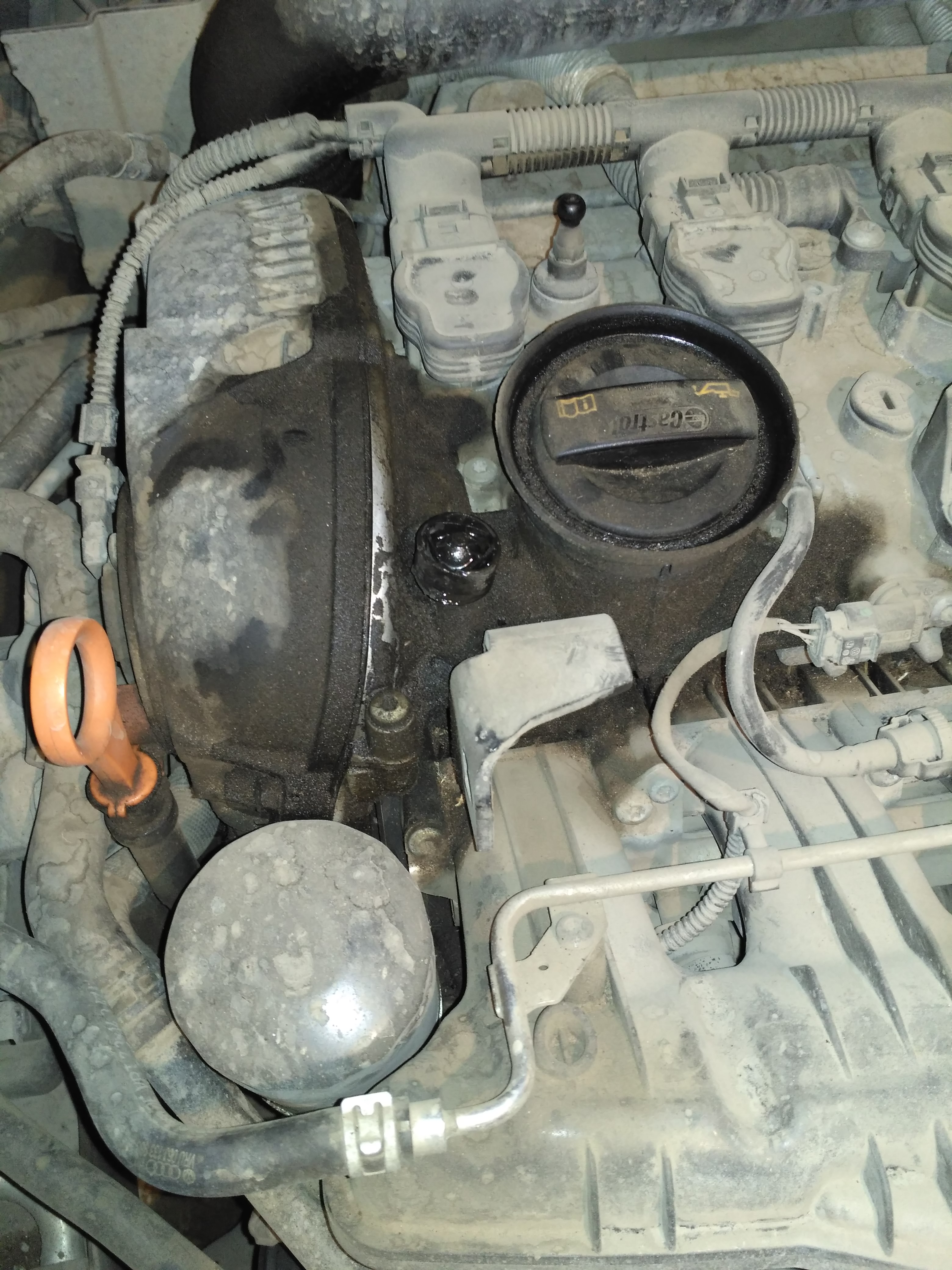 Вы, я так понял, не первый хозяин...Видится мне, что у предыдущего владельца начался жор масла из-за неисправного клапана ВКГ и что бы выровнять давление в картере "умный" дядя Вася из соседнего гаража решил исправить ошибку инженеров ВАГа путем врезки "недостающего" сапуна...мол, Как так??? сапуна нет!!! Должон быть!!! И вуаля!...