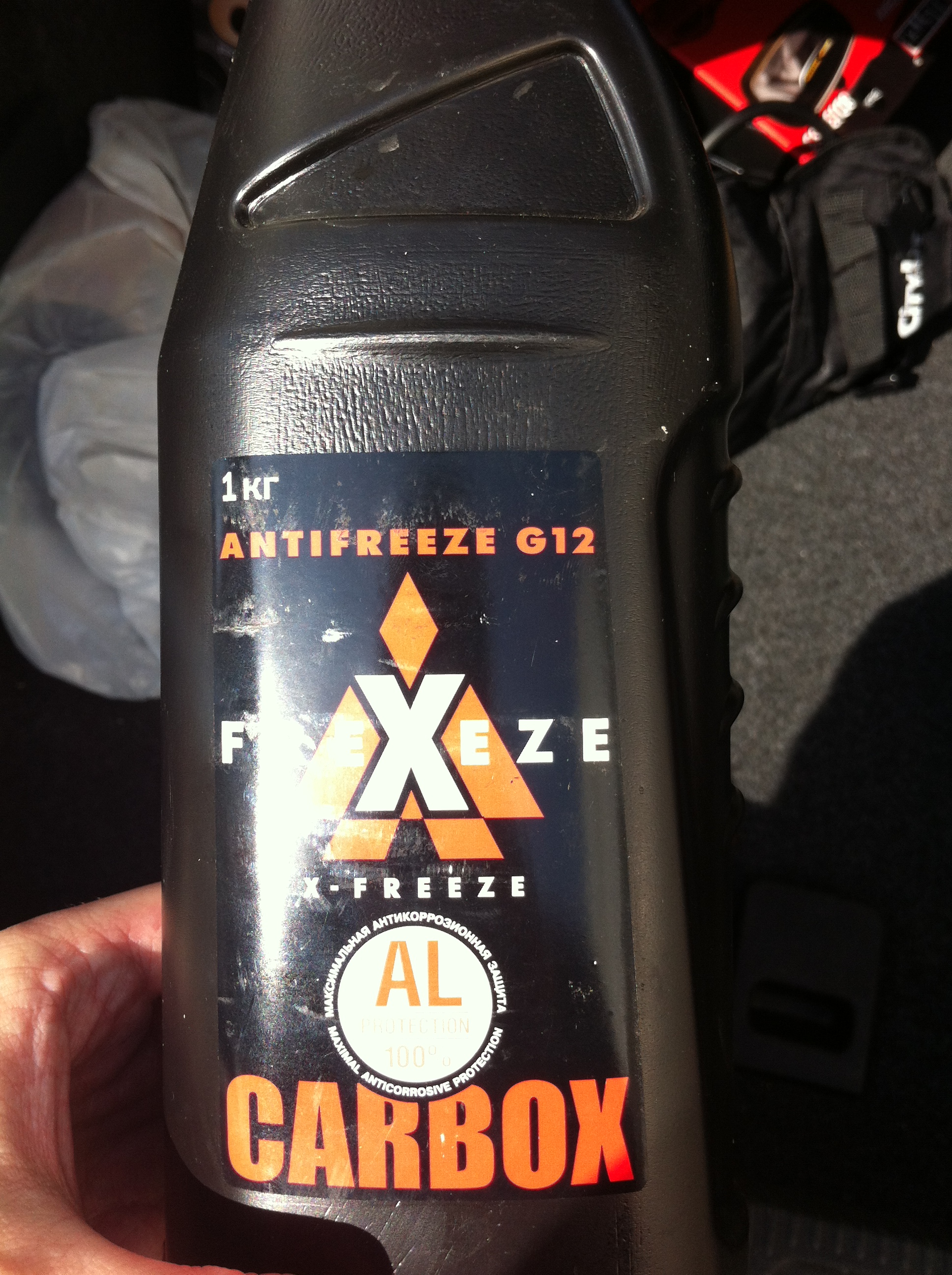 тип антифриза написан на этой баклашке (как правило G12+)