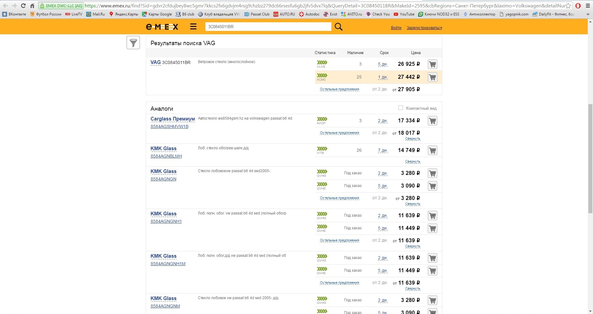 demainst писал(а):Игорь1812 писал(а):На экзисте и емексе разница в цене на стекла очень большая,у меня по вину бьется стекло 3C0845011AG,цена оригинала на экзисте от 19542 р,на емексе то же стекло стоит от 13339 рублей.Ничего такая разница!!!