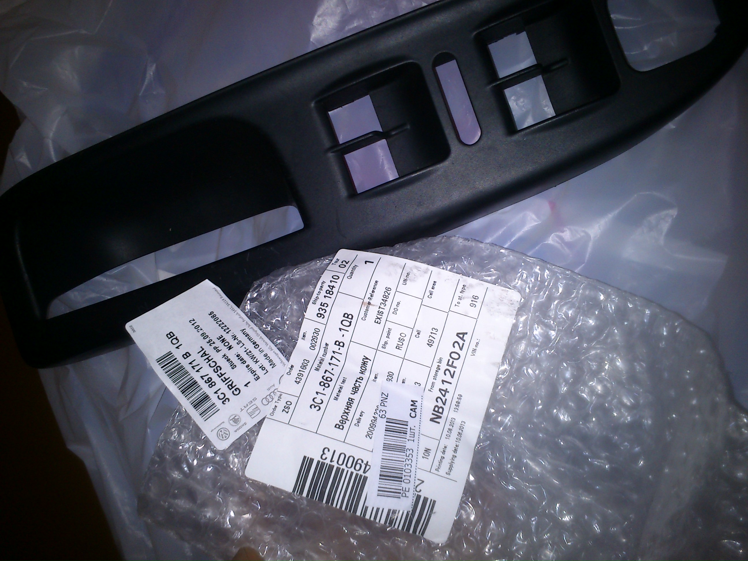 . Пришлось заказать новые: верхняя накладка водительской двери, ручка пассажирской передней двери и заглушка пассажирской двери - цена в АВТОДОКЕ-2.700 руб.