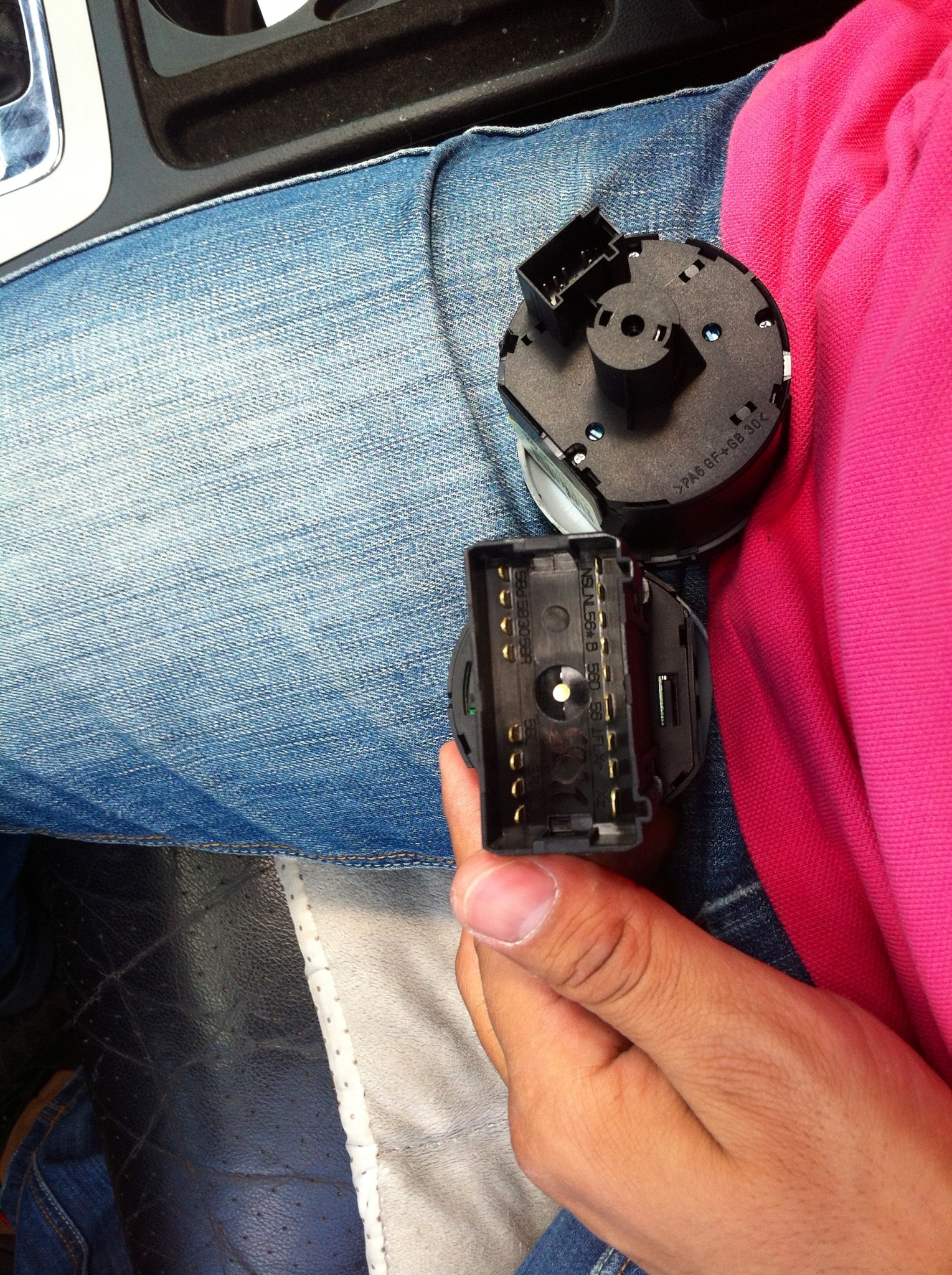 ...Если же не будет вытаскиваться переключатель, то открой под ним мини-бардачок, просунь руку. Нащупай тыльную сторону переключателя и выдавливай пальцами, при этом другой же рукой продолжаешь тянуть за крутилку. Так сказать, помогай ему вылезти)) Удачи!