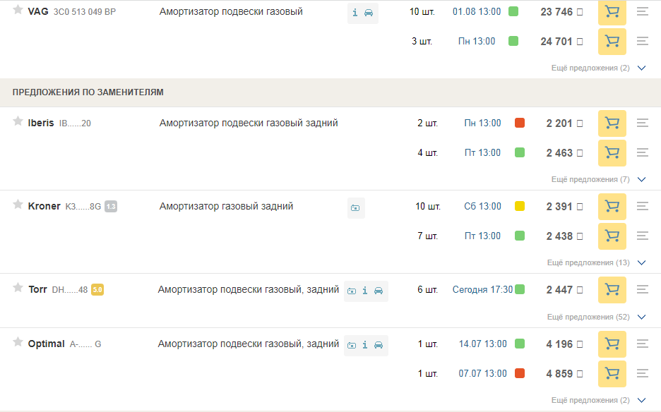 не факт. Зато в экзисте и им подобным при получении можно проверить деталь, и если привезли не то - перезаказатьТорас писал(а):По идее, если в том же экзисте по вину пробивается определенный амортизатор и нажимаешь показать аналоги, они же не должны по размерам хотя бы отличаться?