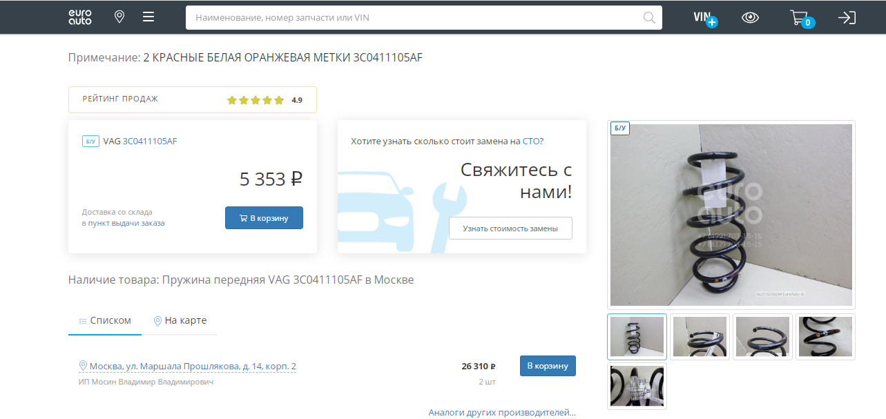 Заказал пружины на замену оригинал пришли пружины с данным номером но они имеют метки (красн. красн, красн, кранс) на 20 мм ниже и тоньше. Заказывал дважды у разных поставщиков, приходили с метками 4 красный.