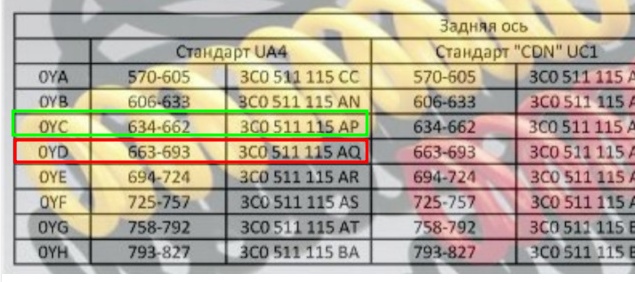 С завода подставили на зад пружины 3C0511115AQ (Си Ли Же Же), они идут на вес 0YD (красный квадрат).