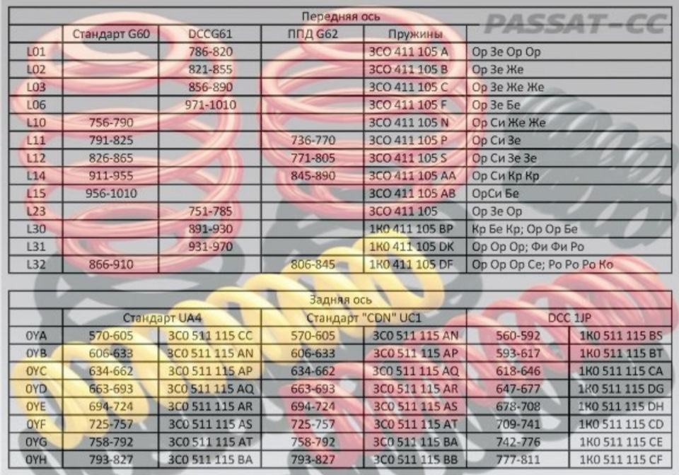 Я думаю что передние пружины у меня ппд т.к. в таблице я вижу G62 - это ппд и для L32 указан код 1K0 411 105 DF как раз мои пружины