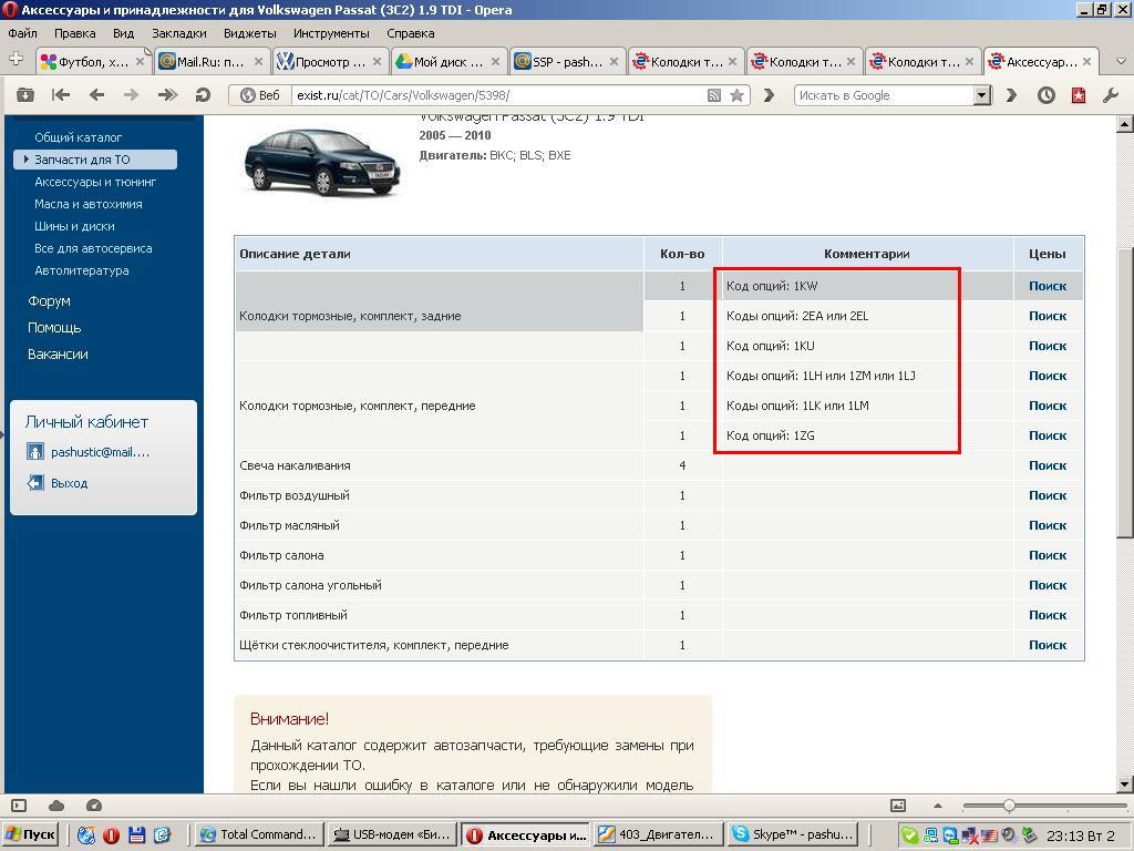 Автомобиль - Passat B6 2007г.в. В поиске не удалось найти, этка вместе с каталогом экзиста упорно предлагает по 2-3 варианта колодок под тормозные диски разного диаметра. Покупать и возвращать не хочется, а лампочка замены уже загорелась..