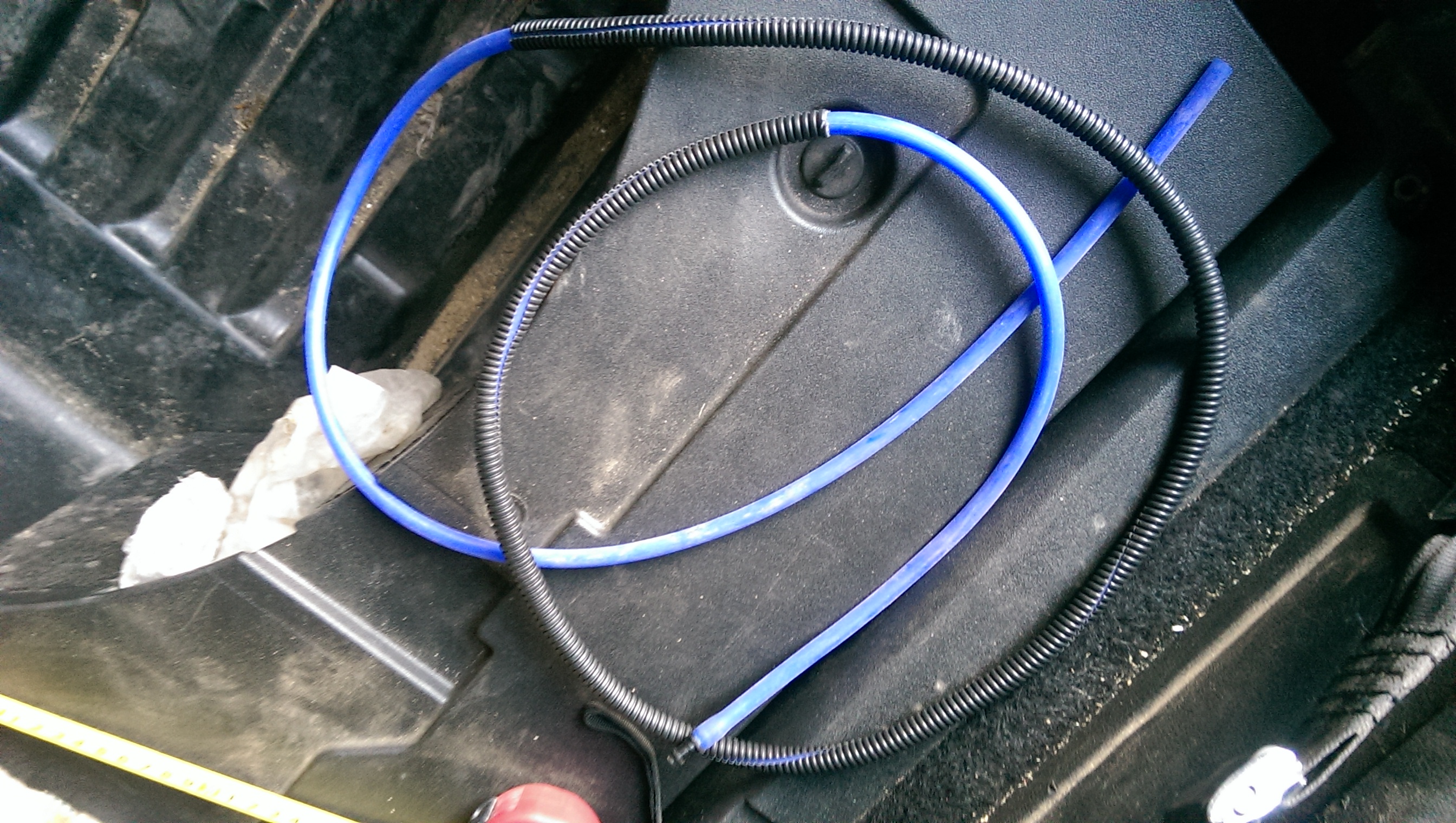 Принял решение вскрывать обшивку, сдёрнул нижнюю с двери багажника, стал искать где пропадает напор. омывательвключается при открытой двери - опять же, на сколько я понимаю, косяк концевика. Омывайка поперла из под обшивки багажника с правой стороны, в нише за обшивкой, где блок парктроников лужа (кстати уже имел счастье как-то раз утопить его) - снимаем обшивку по багажнику дпльше, вплоть до панели которая держит потолок сзади. Течь нашлась из под обшивки крыши в районе петли, стал выпутывать трубку из пучка (два с половиной часа с осушением ниши, доставанием пробок из под панели которая закрывает полость под бампером и т.д.). трубка вышла двуми частями - видимо в морозы лопнула в районе петли. Срастить её не получается, гофру можно было даже не пробовать. буду менять, правда пока не знаю на что, может кто имел опыт.....