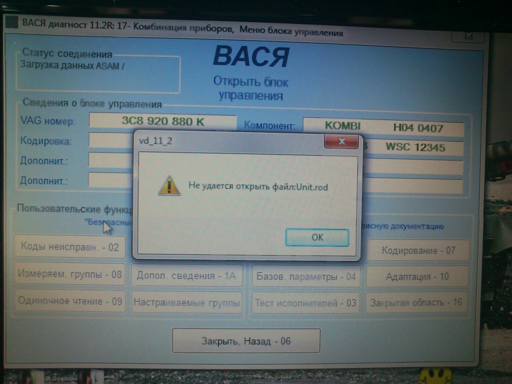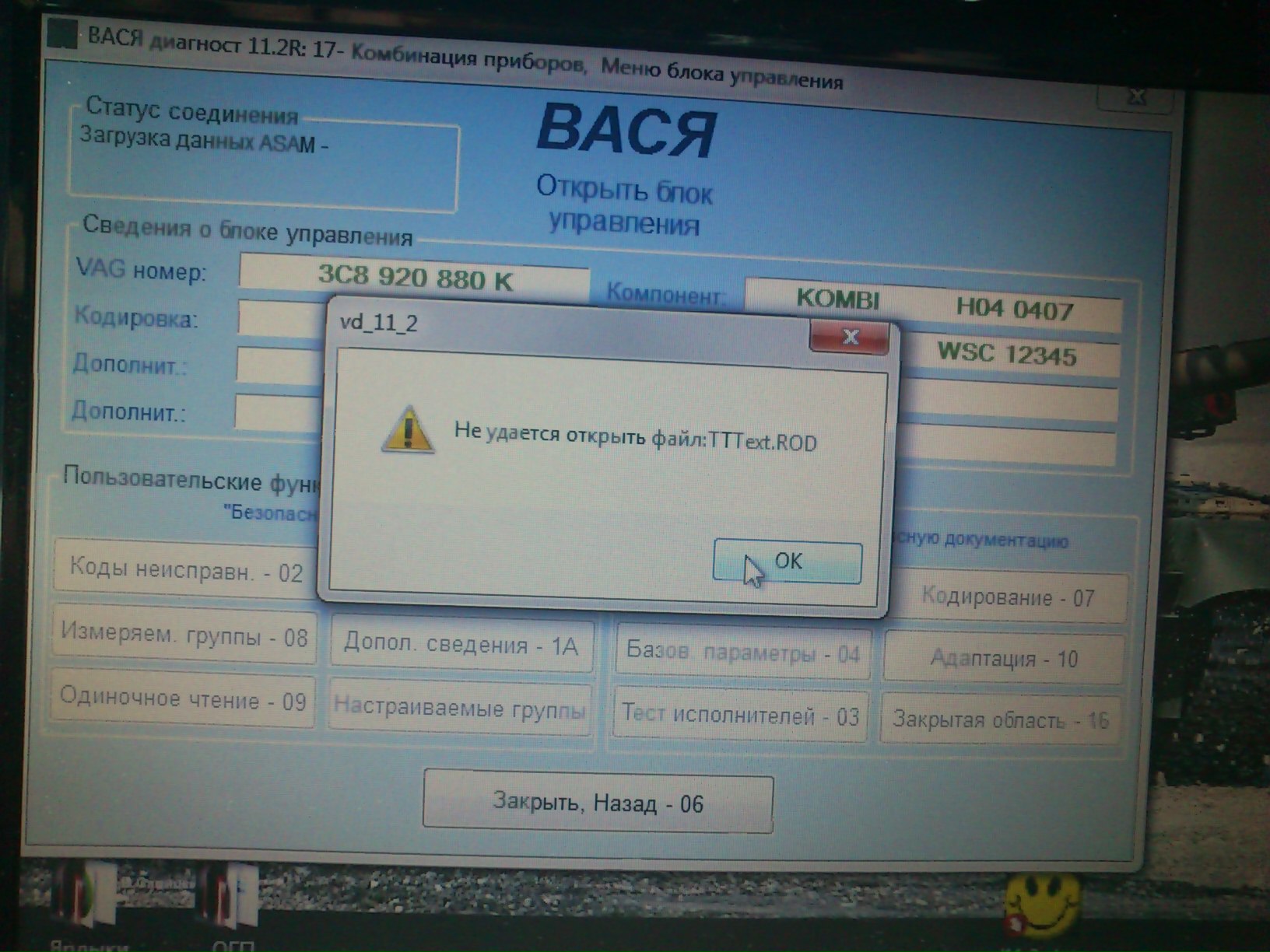 RUS.YRN писал(а):Паша,спасибо за прогу!Прога установилась,тест шнурка проходит опять только если откатить дату на 01.05 13.После того как прошел тест,сохраняю.Пытаюсь зайти в какой нить из блоков ,а мне пишет вот что