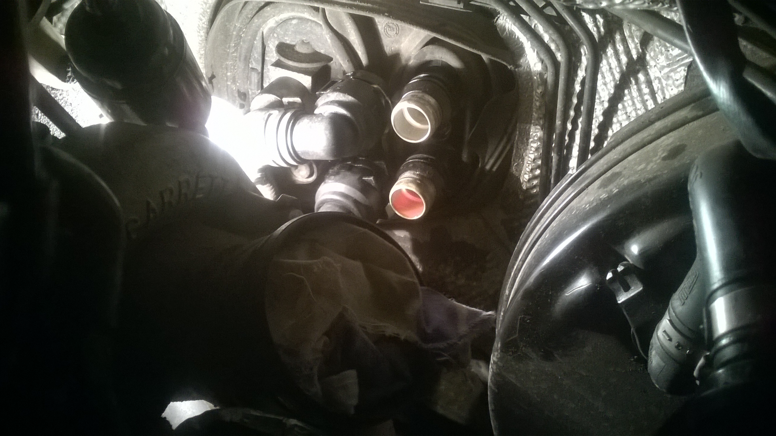 руками толком не подлезть, пальцем чувствую между двух трубок дырка, что в ней и на сколько - непонятно. подбирать на ощупь размер сложно.