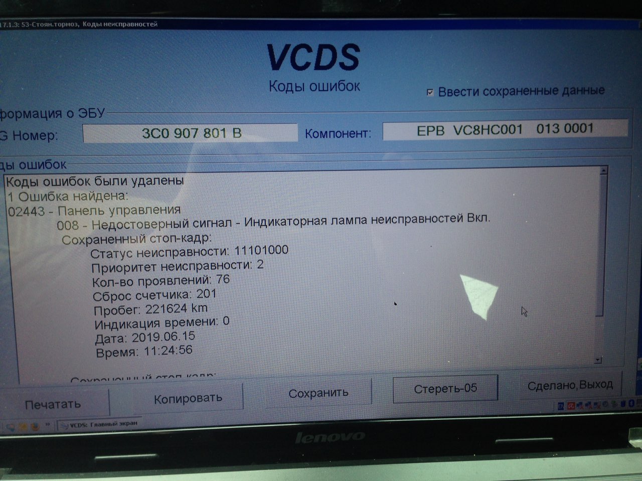53- Электромеханический стояночный тормоз -- Статус: содержит неисправности 0010