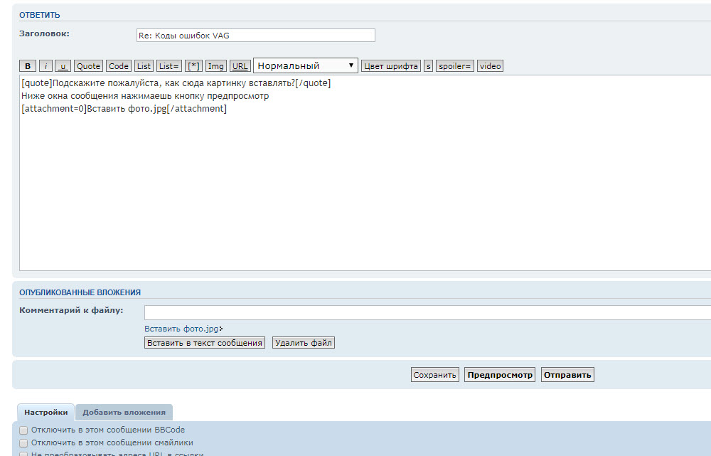 - Вложения