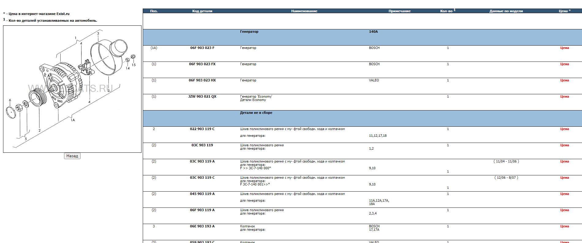 Ksandr писал(а):По вину бьется ампераж - 180,140..А. Можно через экзист по эл.каталогу, тот выдает что установлено на авто. Или через автодок, тоже самое.