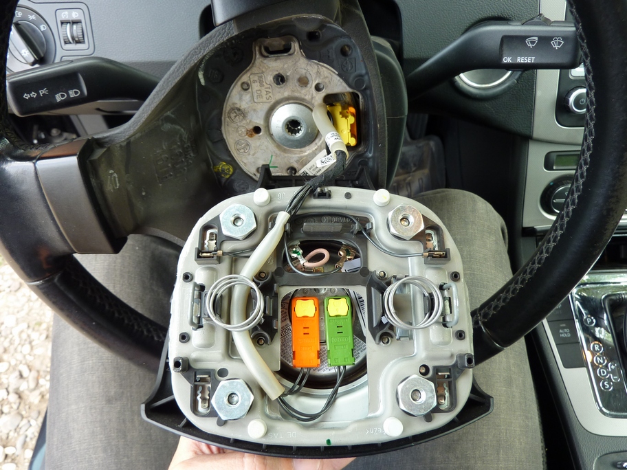 Подушка у него другая. .как у б7 !!! НУ и соответственно если была два пиропатрона у трехспицевого .. то ставить обманку!!