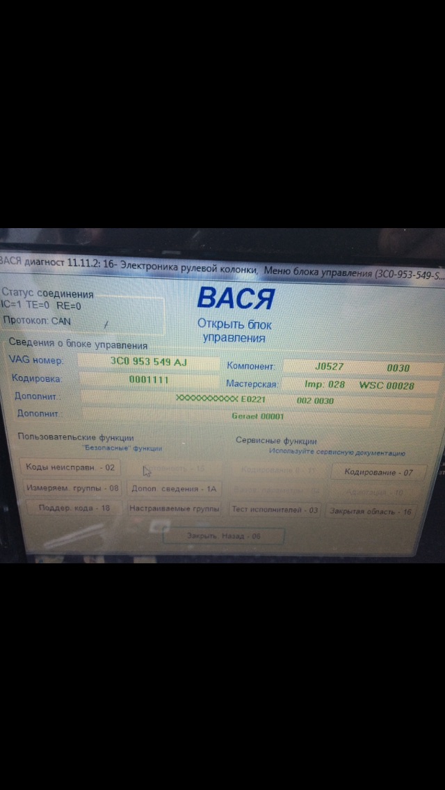 Jorik661 писал(а):Здравствуйте!подскажите по такой проблеме стоял обычный руль и подрулевой блок 5K0.953.569.R, решил установить 12 кнопочный мультируль и заказал новый подрулевой 5K0.953.569.T для этого руля, проблема вот в чём, поставил новый подрулевой, включил зажигание высветилось куча ошибок на панели, подключаю Васю и пытаюсь зайти в 16 блок рулевой колонки- не заходит, не работают поворотники и дворники, не проходит адаптация! в чём может быть проблема?бракованный блок?в родной подрулевой всё нормально заходит и адаптация руля проходит отлично.