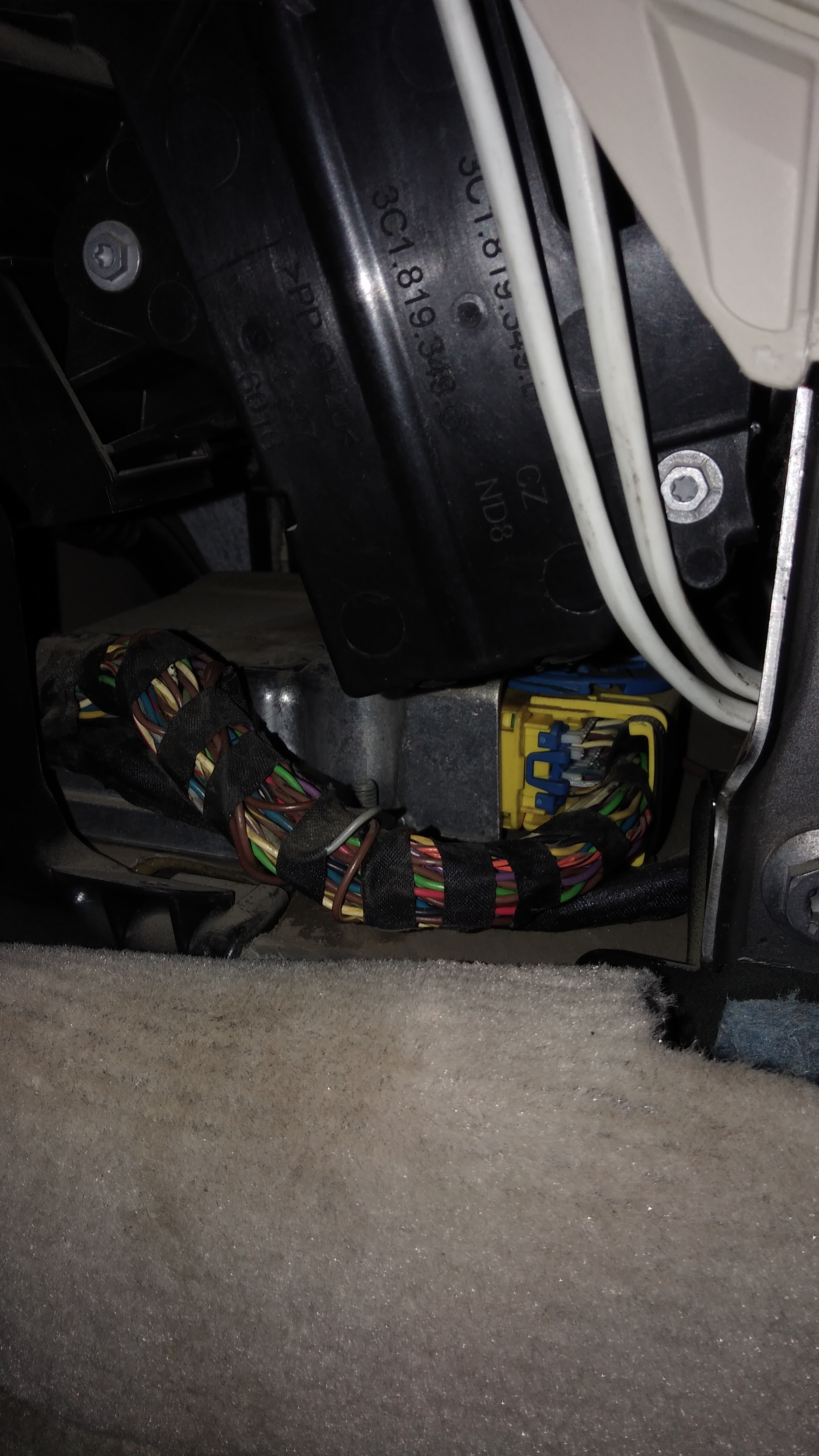 Прошу помощи у клуба, как проходят провода на пирапатрон боковой правой шторке,за бардачком только ко что на фото, это 1 штекер уже с резисторами торпедный и все, по стойке только 1 провод - не подходит.
