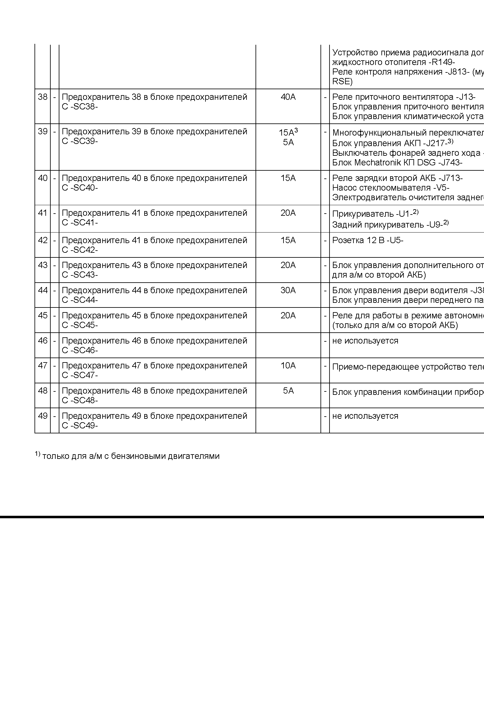 genaver писал(а):Скажите пожалуйста а какой предохранитель на блоке предохранителей отвечает за лямбда зонды. Заранее спасибо. B6, FSI, BLY, WIN WVWZZZ3CZ6E088281. Если можно с картинками или хотя бы откуда скачать. Блоки по бокам совпадают с картинками выше а под капотом не совпадают.