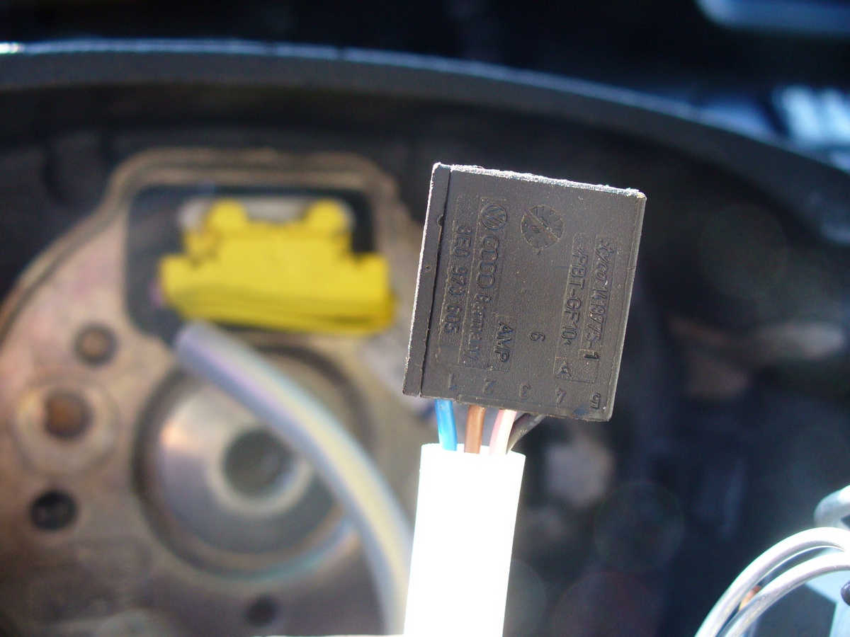 Не будет бибики!! Тогда на 7 пине сидит черный, вам нужно прозвонить этот черный ( 7 пин) с синим на последнем фото. Если звонятся значит ок..Один контакт сигнала вы завели.. второй сигнал..возьмите срежте с разъема кнопок любой из проводов ( коричневый и светлорозовый) , обожмите клеммны наконечником ( подобный синему на фотке, где подуха) и втыкните во второй вывод сигнала ( последнее фото ..наконечник не виден так как провода заслоняют) /Из желтого разъема, например коричнневый переставьте в пин под номером 8 И вуаля СИГНАЛ у вас забибикает!