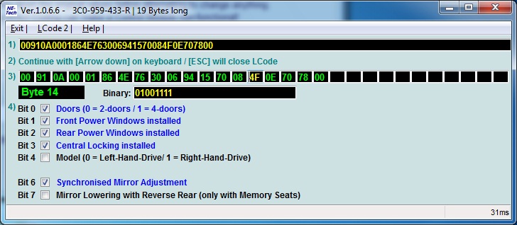 sergilyo писал(а):Ребята выручайте....46 блок 6 байт 6 бит...включил таким образом доводку стекол с ключа...в результате при нажатии и пару секунд удержании кнопки на ключе и в дальнейшем ее отпускании поднимается только водительское стекло....пассажирское работает так как и работало в штатном режиме..т.е кнопку нужно держать все время...т.е по факту эти настройки которые я включил в 46 блоке повлияли только на водительское стекло...электропакет у меня передний...может кто подскажет можно ли это безобразие как то настроить????????