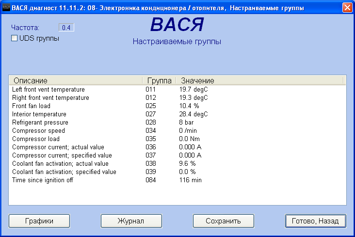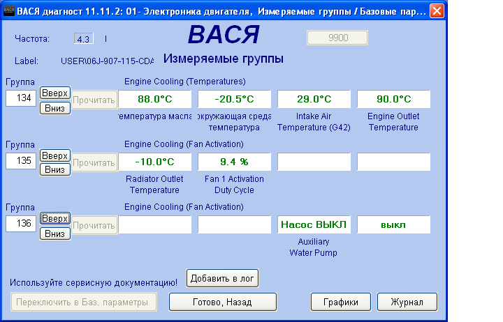Alemania писал(а):задание на вращение вентиляторов есть вот и вращается. Что показывает температура на выходе из блока двигателя ? 134 группа 4 окно