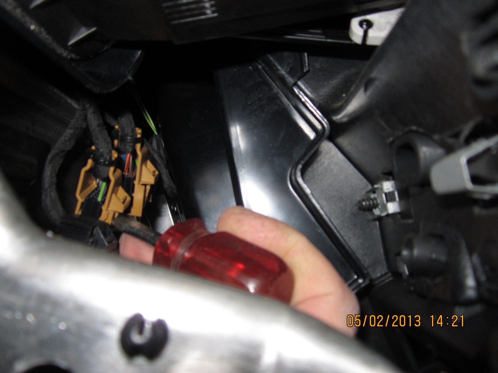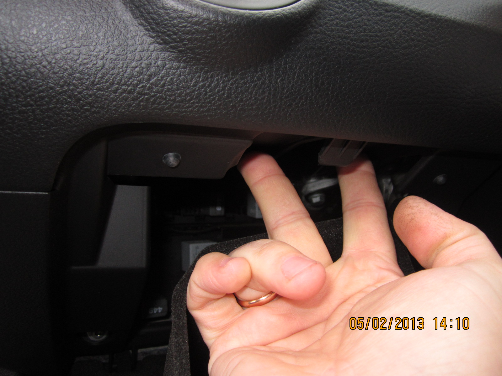 смотрите внутрь панели вверху, у траверсы торпеды около панели приборов есть ваш блок...