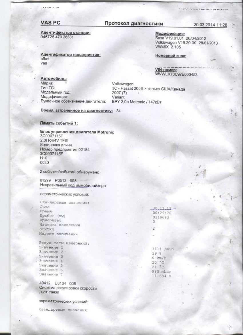 Приезжал какой то диагност от офицалов, сделал распечатку
