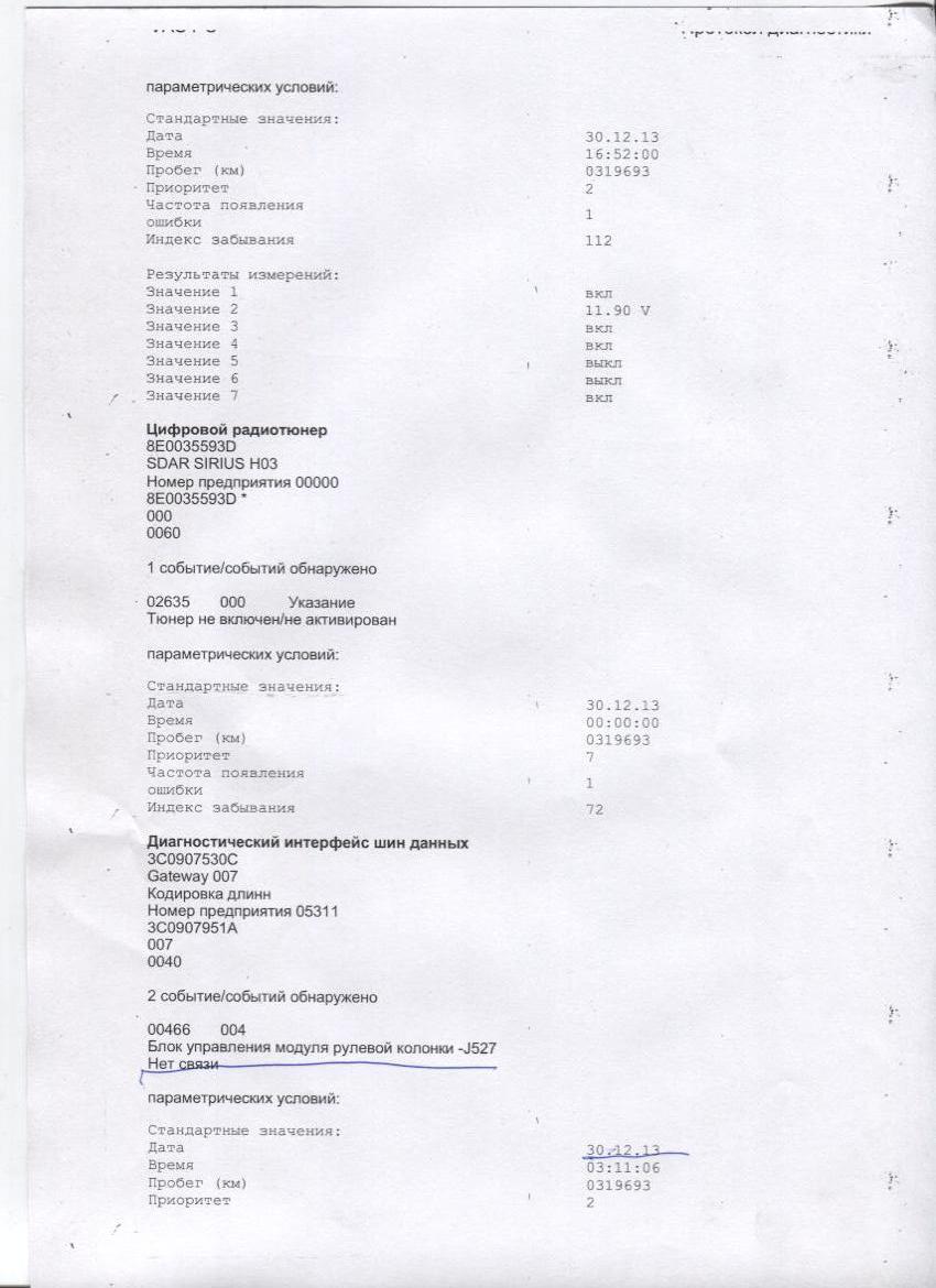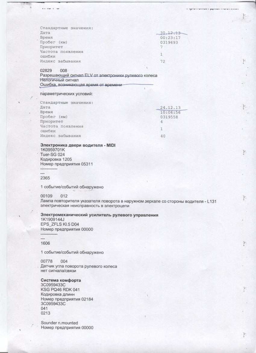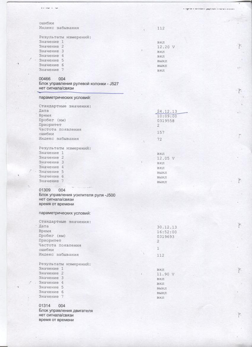 Ошибки которые распечатал диагност выложу сегодня вечером (может кому интересно будет)