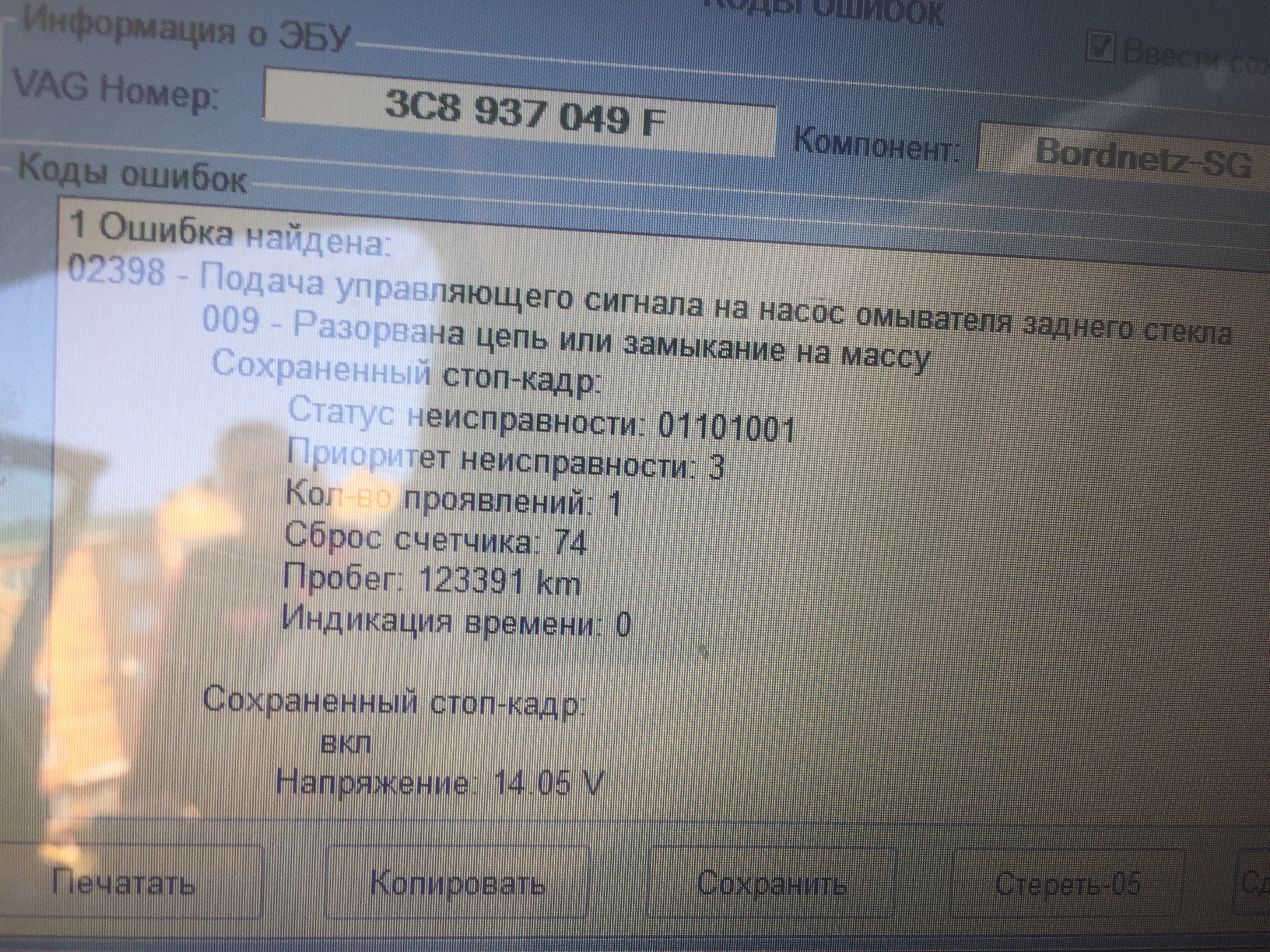 Статус неисправности: 00100000