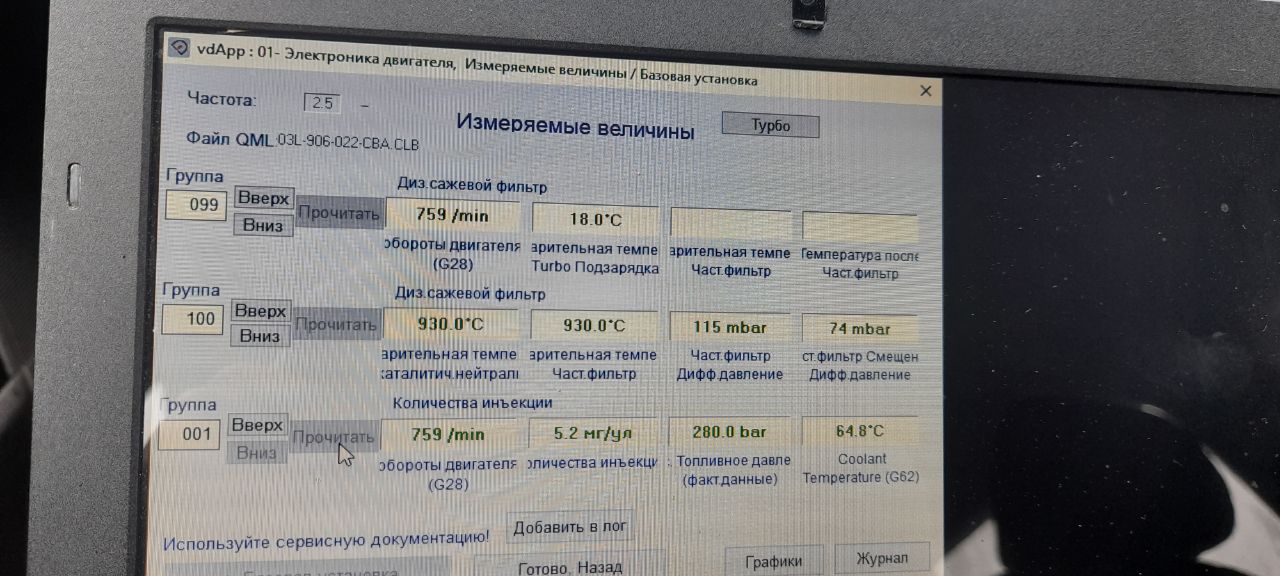 Температура на датчиках, по моим наблюдения, не снимается должным образом. Думаю, они мертвые. На датчике до турбины жестко 18 градусов на холостых, при движении может резкий скачек до 550 градусов и резкий скачек до 18 градусов. Каких-то плавных показаний нет. На ОГ до сажевого на холостых жестко 930 градусов, при движении может упасть до 230 градусов и подняться до 550 градусов. Тоже резко, плавных изменений нет. На ОГ после сажевого стабильно 930 хоть на холостых, хоть в движении.