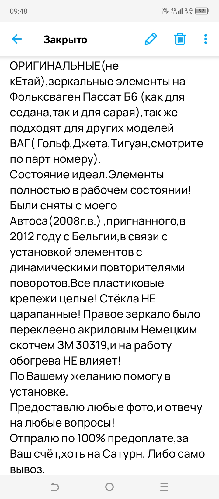 Привет Юр. Нормально ты свои продал, с учетом того, что комплект родных зеркал сейчас стоит 22-24т.р.Юра Криков писал(а):Значит я свои продал норм)