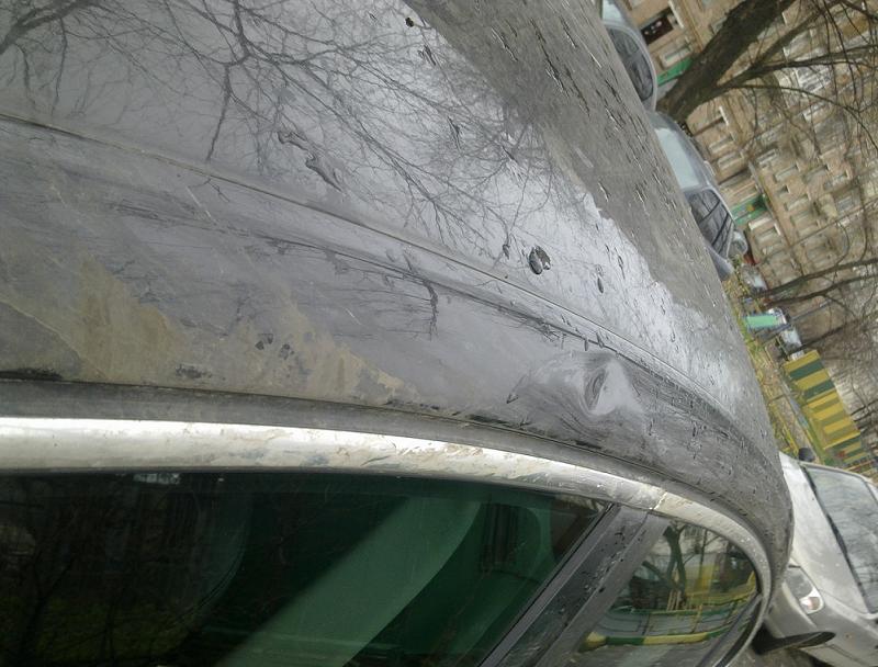 Честно могу сказать, что машину не мыл дней 5, так как бесконечная грязь кругом. Поэтому дату точно назвать не могу, когда это могло случится. У дома машина стоит на почетном расстоянии и с балкона надо быть мастером-бластером что бы попасть в это место прорезиненным предметов точно...да нет бред...еще был у друзей в магическом районе "Вешняки", там конечно сброд разный лазает, но думаю они церемониться не стали бы...сразу бы стекло наХ или колеса наХ...а тут...мистика.