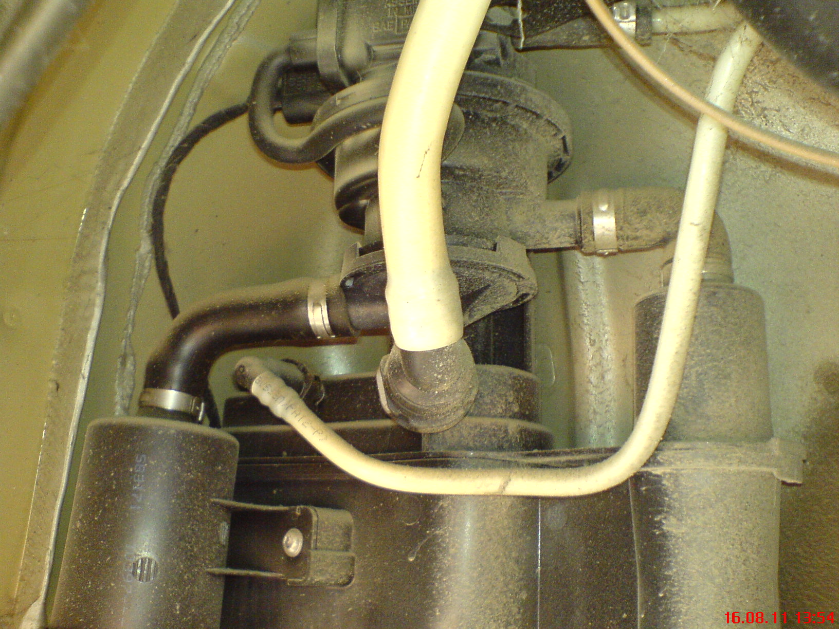 только вот с верху не диагностический насос V144 , а мембранный клапан, который при втягивании сердечника открывает забор воздуха через фильтр и из левого резервуара абсорбера