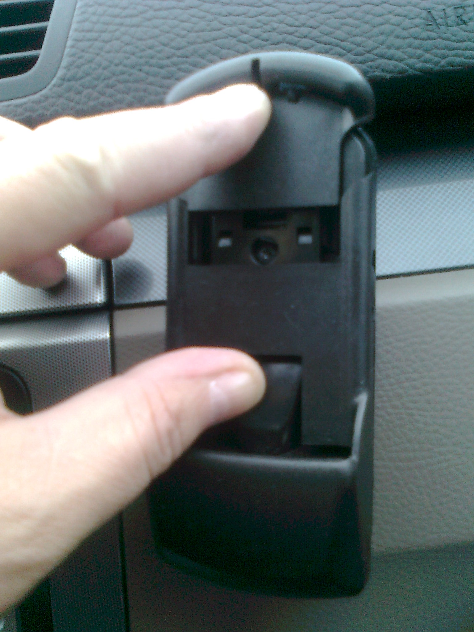 LeXaG393 писал(а):Я вырезал из пластика толщиной около 5 мм пластину, чтобы входила в штатное место кронштейна. Сверху примерно половину толщины снял, чтобы заходило в верхние пазы кронштейна. На неё 3М-скотчем двусторонним закрепил универсальный держатель для телефона (можно для навигатора, телевизора). Держится прочно, при необходимости снимается за 5 секунд. Пока сойдет![]()