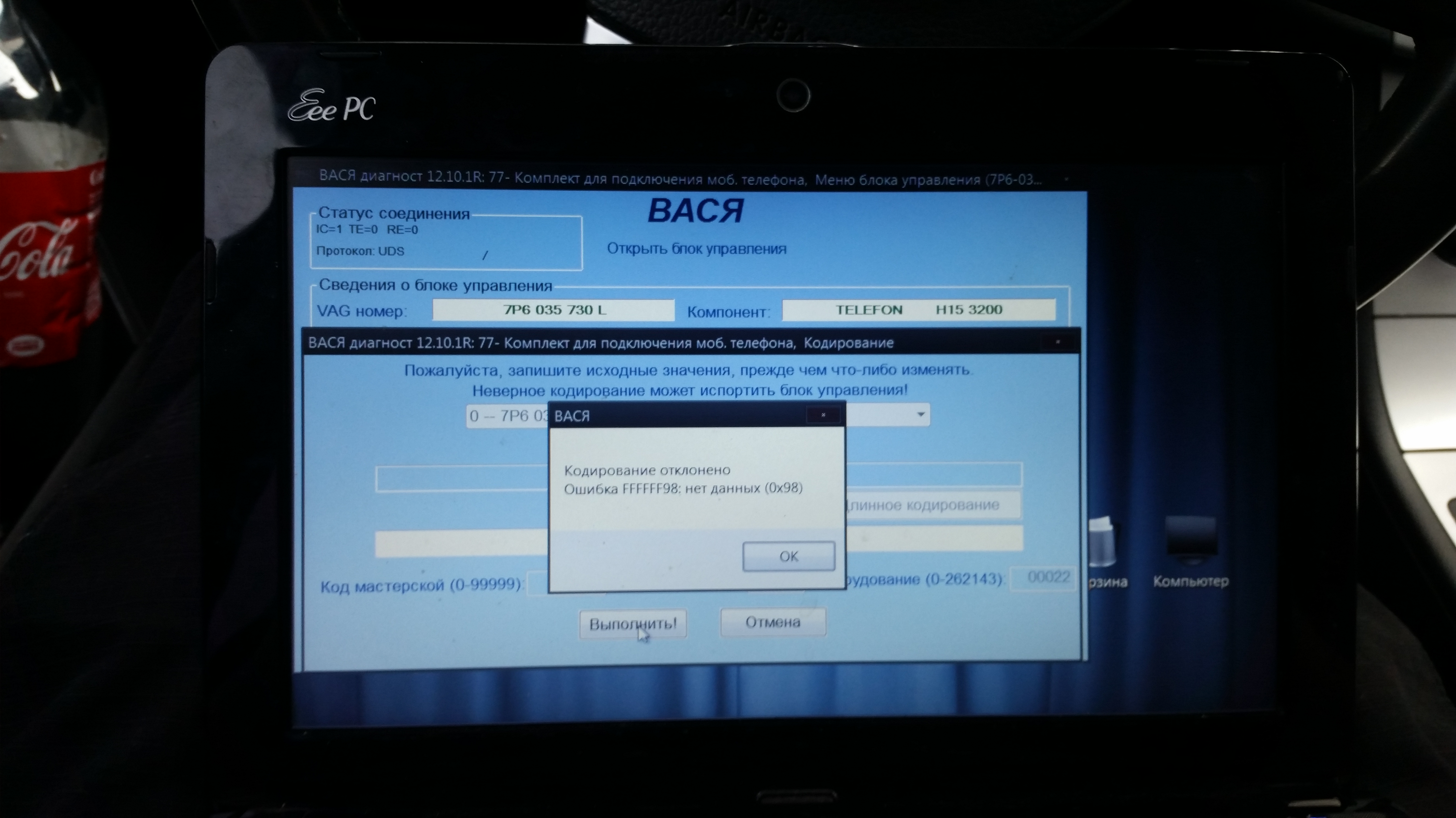 Возникла проблема со штатным блютузом. До этого комплект работал исправно, принимал звонки и сам звонил. Но совсем недавно блютуз перестал конектится с телефонами (пробовал на разных). имеется ошибка: