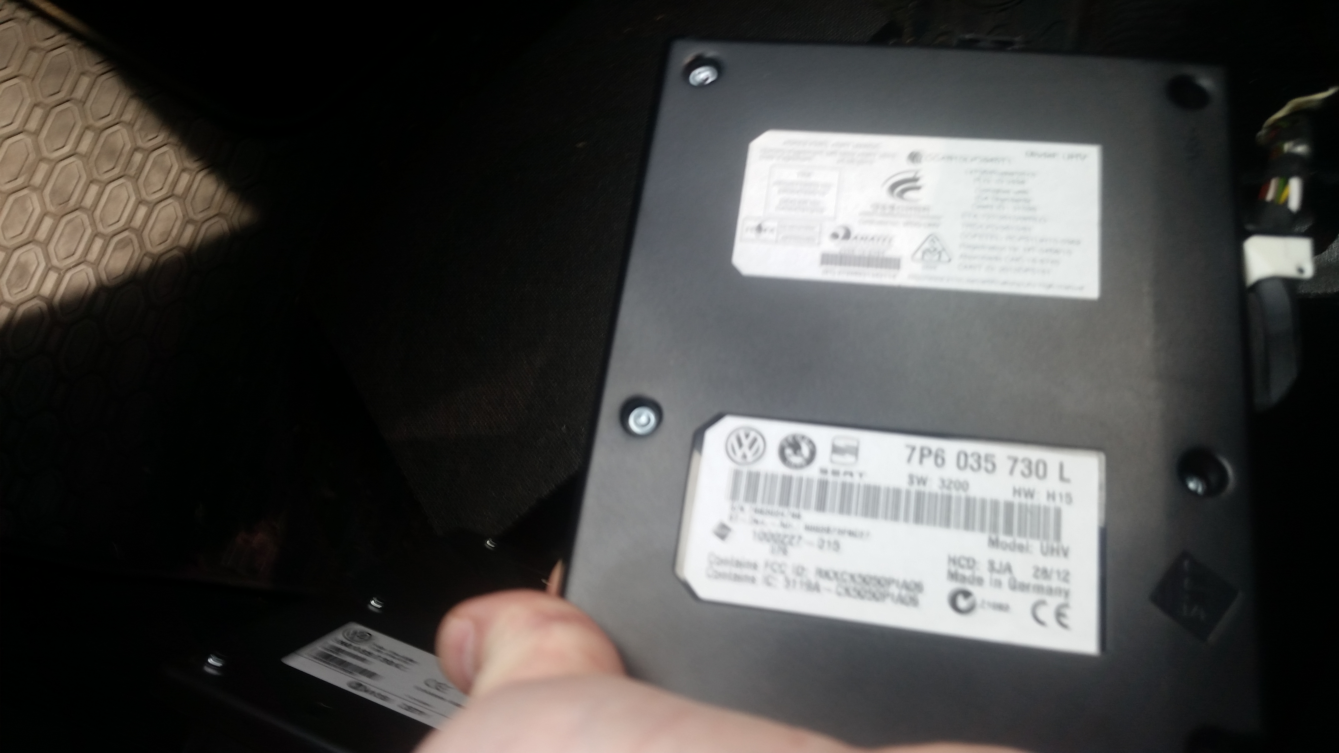 - модуль 3C0 035 730, установленный под креслом переднего пассажира, с разъемом для телефона в верхнем ящике подлокотника.