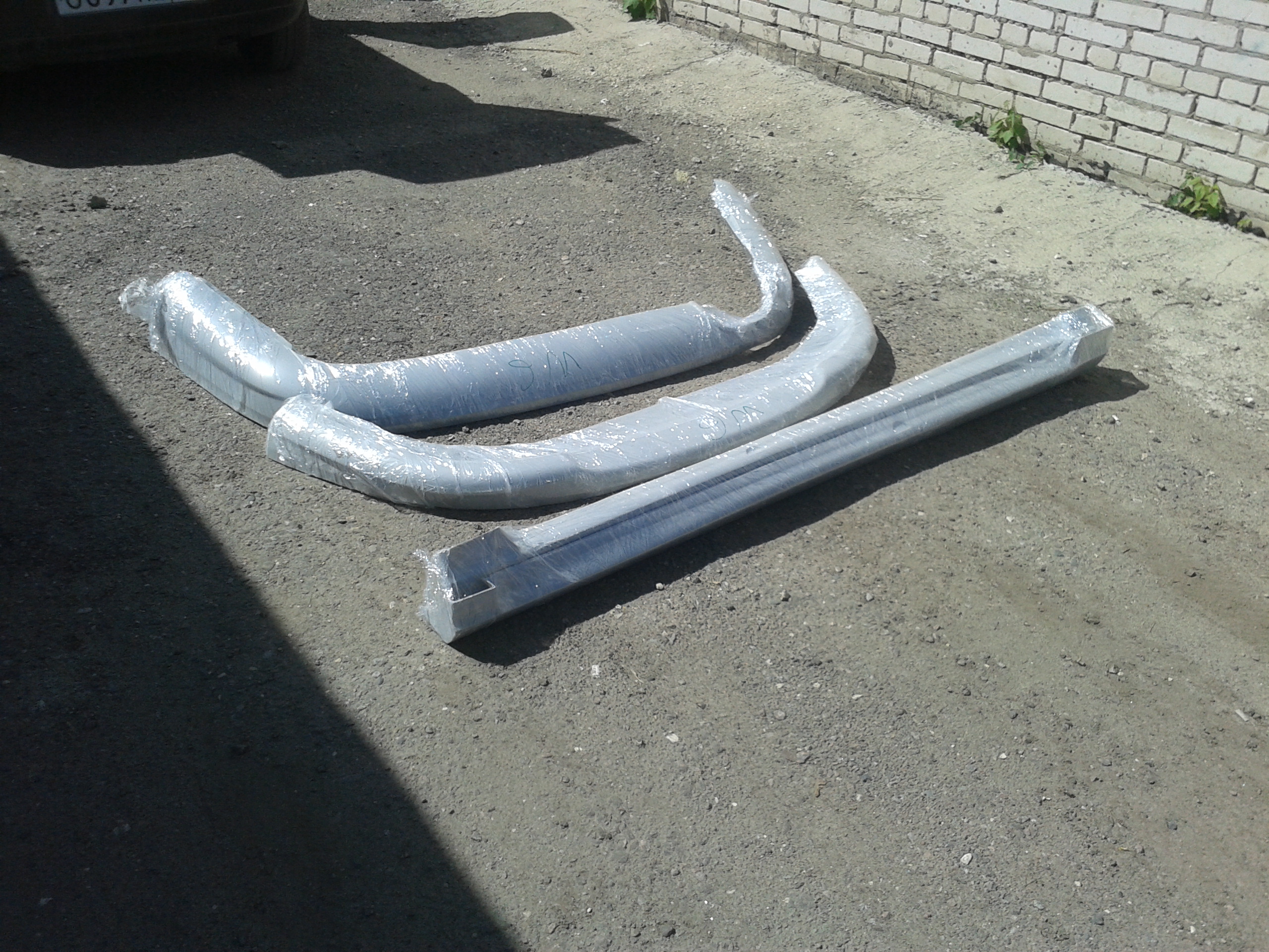 Материал стеклопластик, все детали подгонялись по моему авто и в данный момент уже установлены.